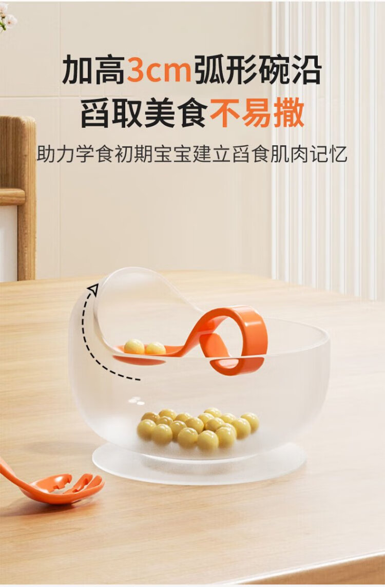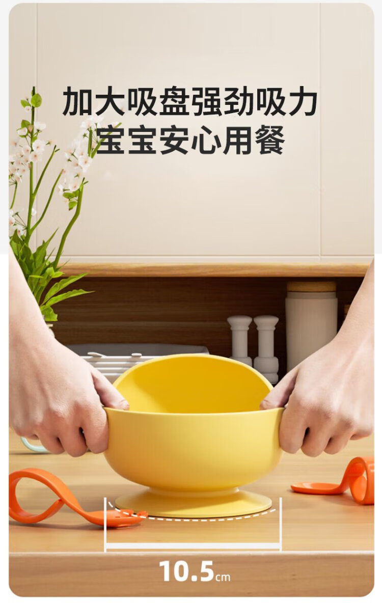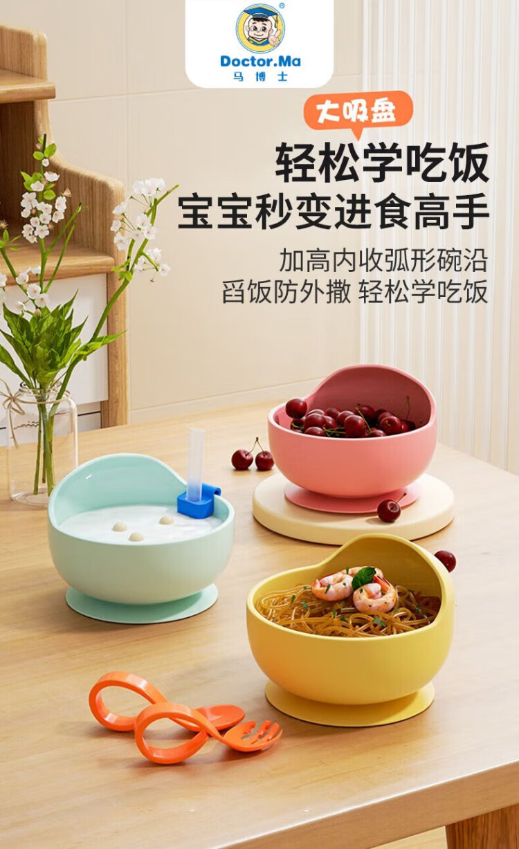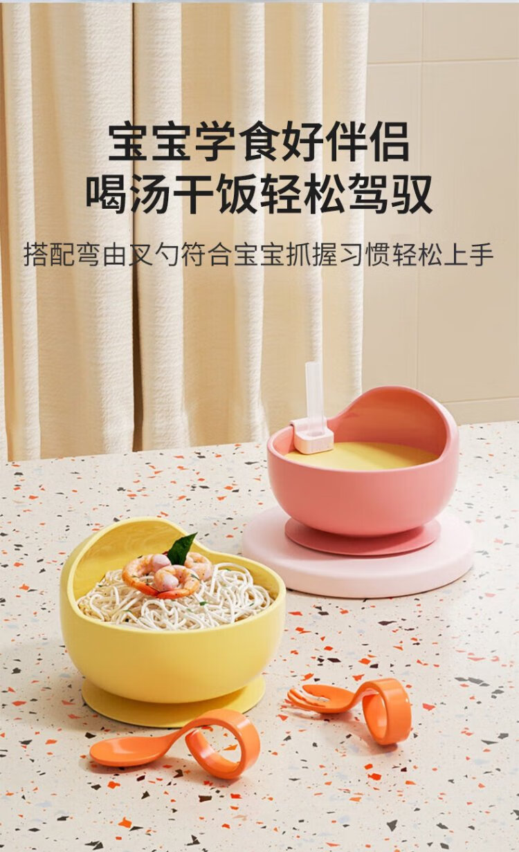 马博士婴儿辅食碗儿童餐具叉勺宝宝辅食勺学吃饭训练勺子便携吸盘碗黄色
