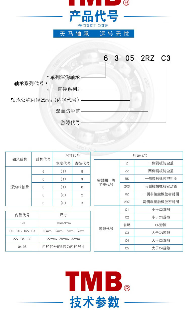 TMB/深沟球轴承 6201-2RS橡胶密封 尺寸:12mm*32mm*10mm