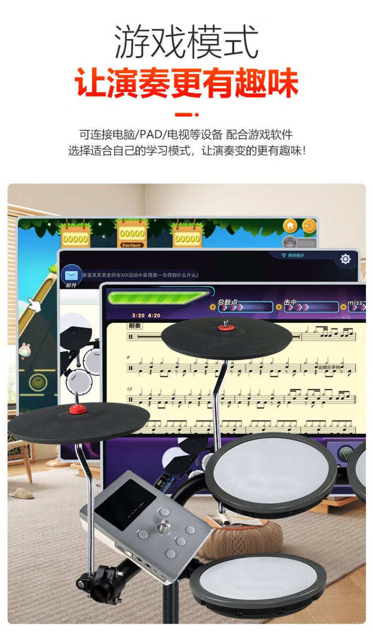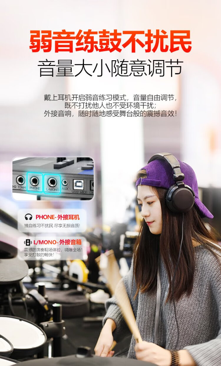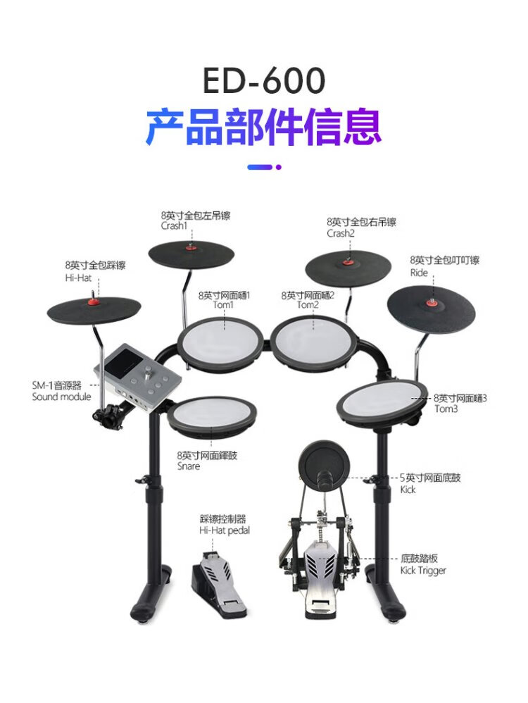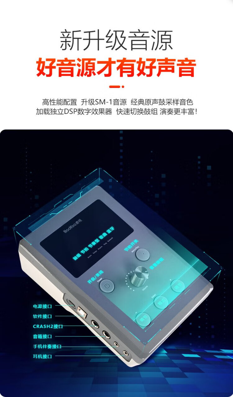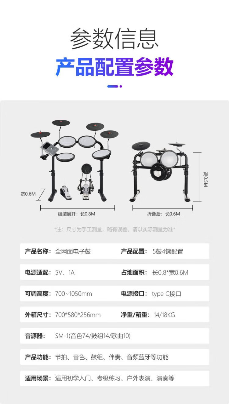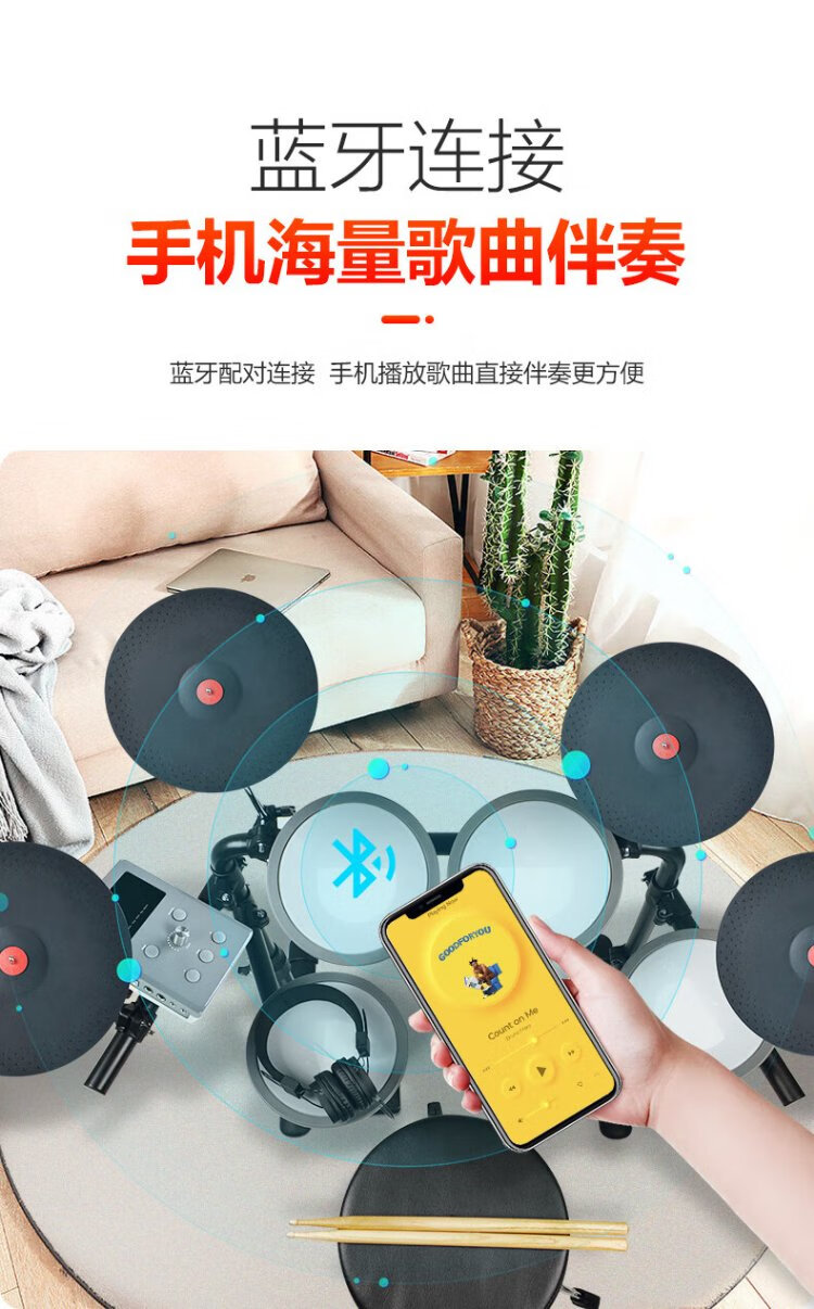 波悦(Booyoo)ED600S 全网面5鼓4镲专业电子鼓架子鼓儿童初学者便携式电鼓