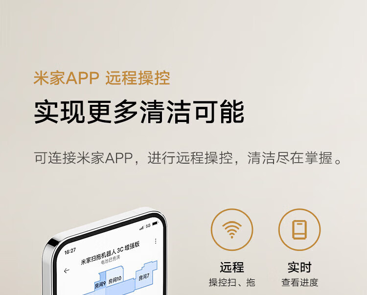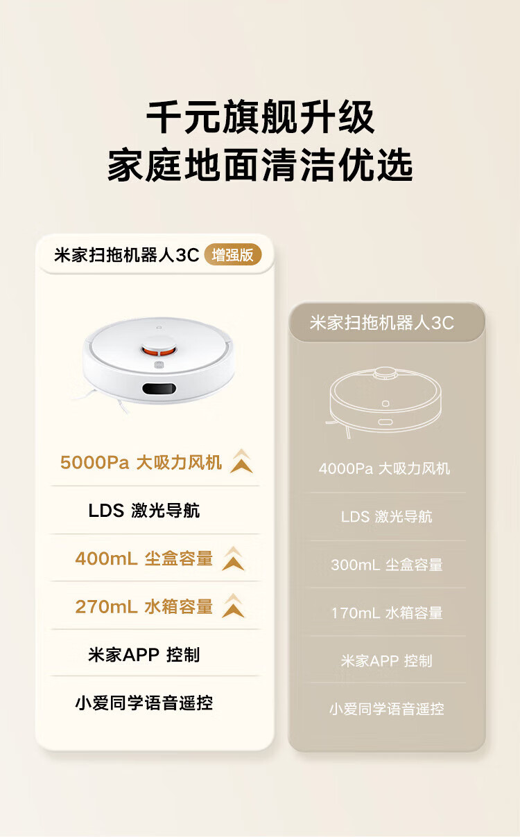 小米(MI)米家扫地机器人3C增强版家用高效清洁扫地一体机自动避障小巧机身手机远程操控