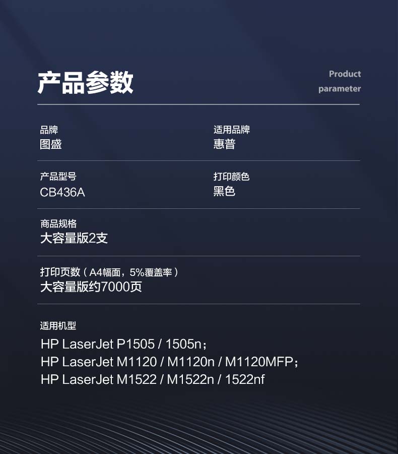 图盛CB436A硒鼓适用惠普HP P1506 P1506n P1505 P1505N M1120 M1120n M1120a M1522n M1522nf打印机墨粉盒36a硒鼓