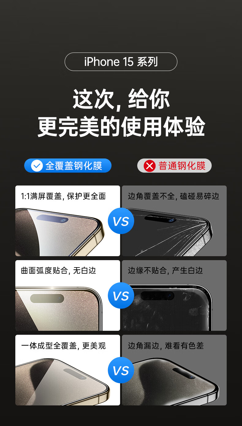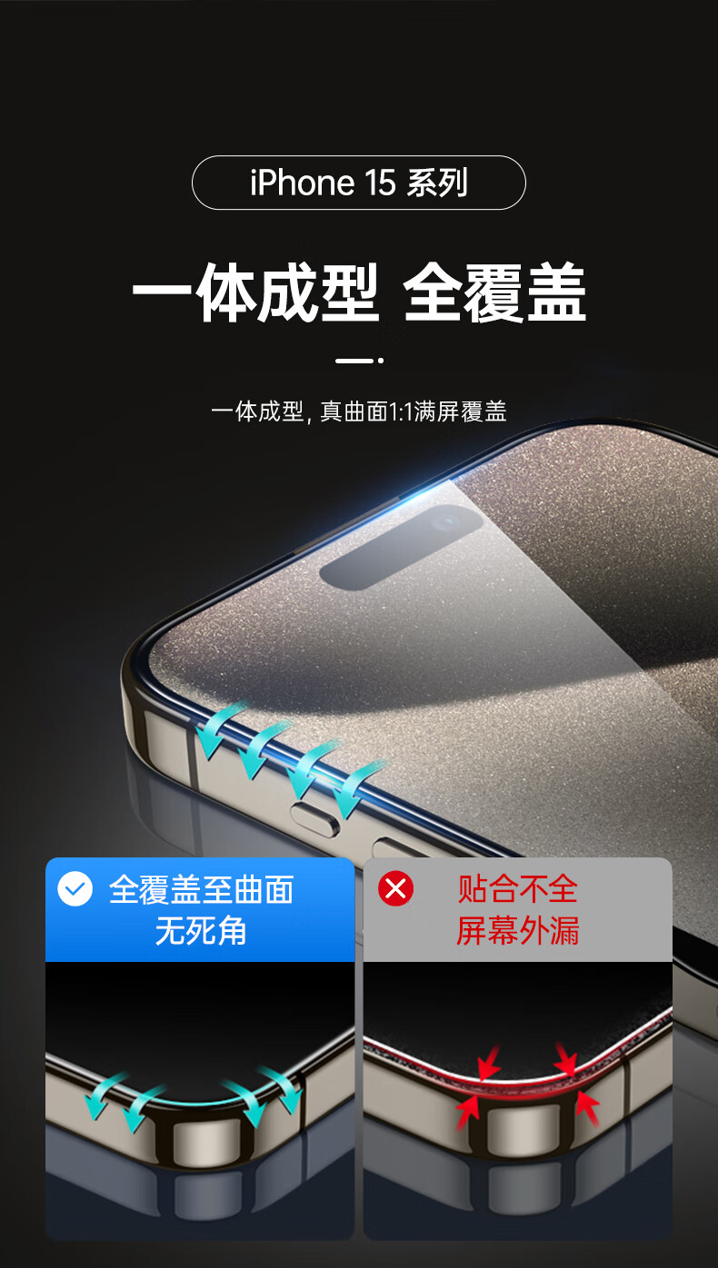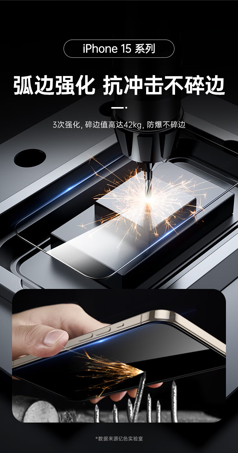 亿色【2片】适用iphone15promax钢化膜苹果15 promax钢化手机膜高清抗指纹全包贴膜全覆盖防摔手机前膜
