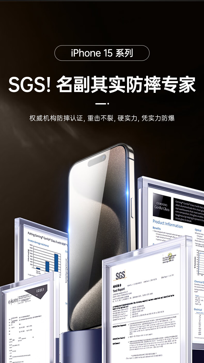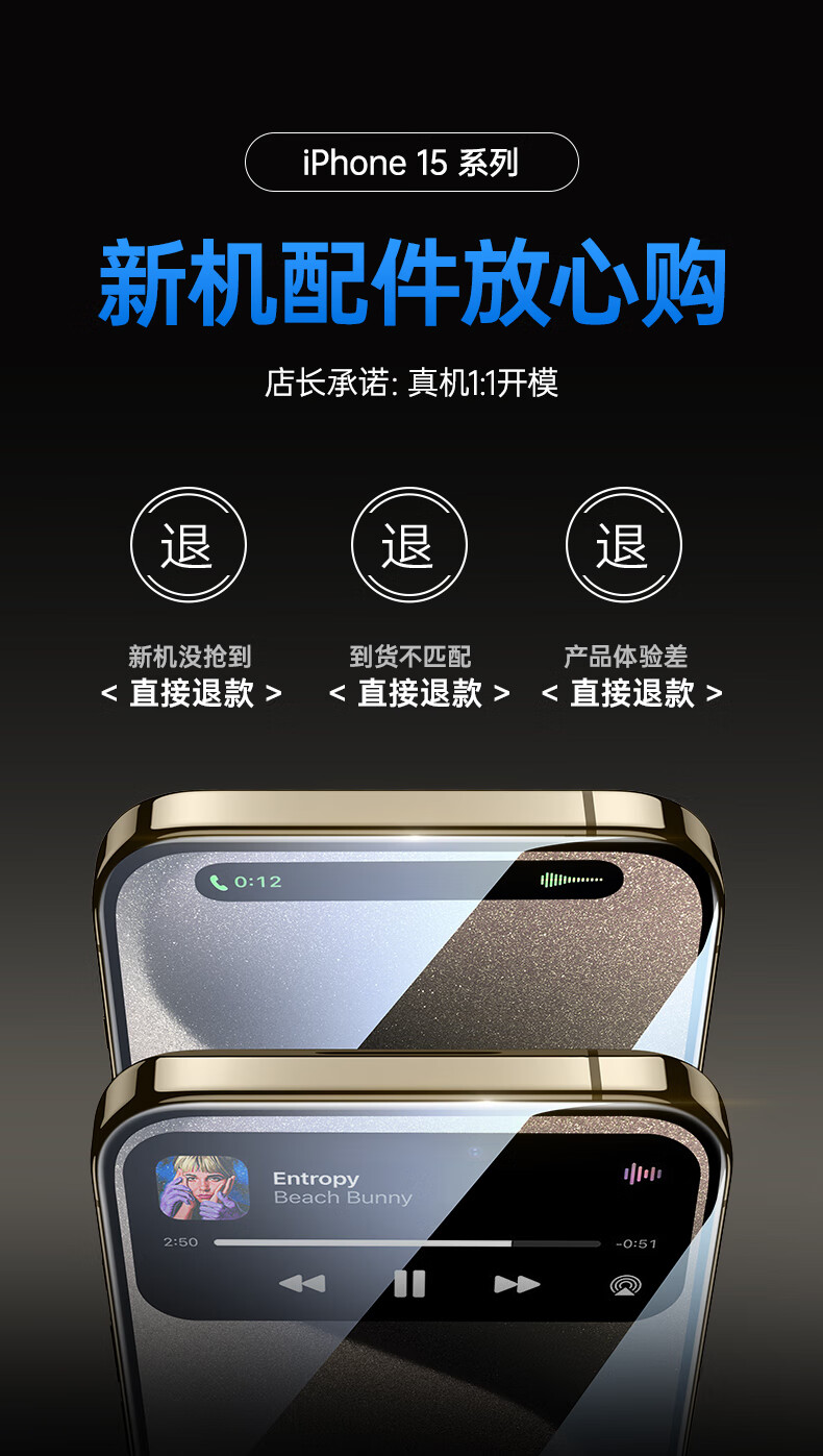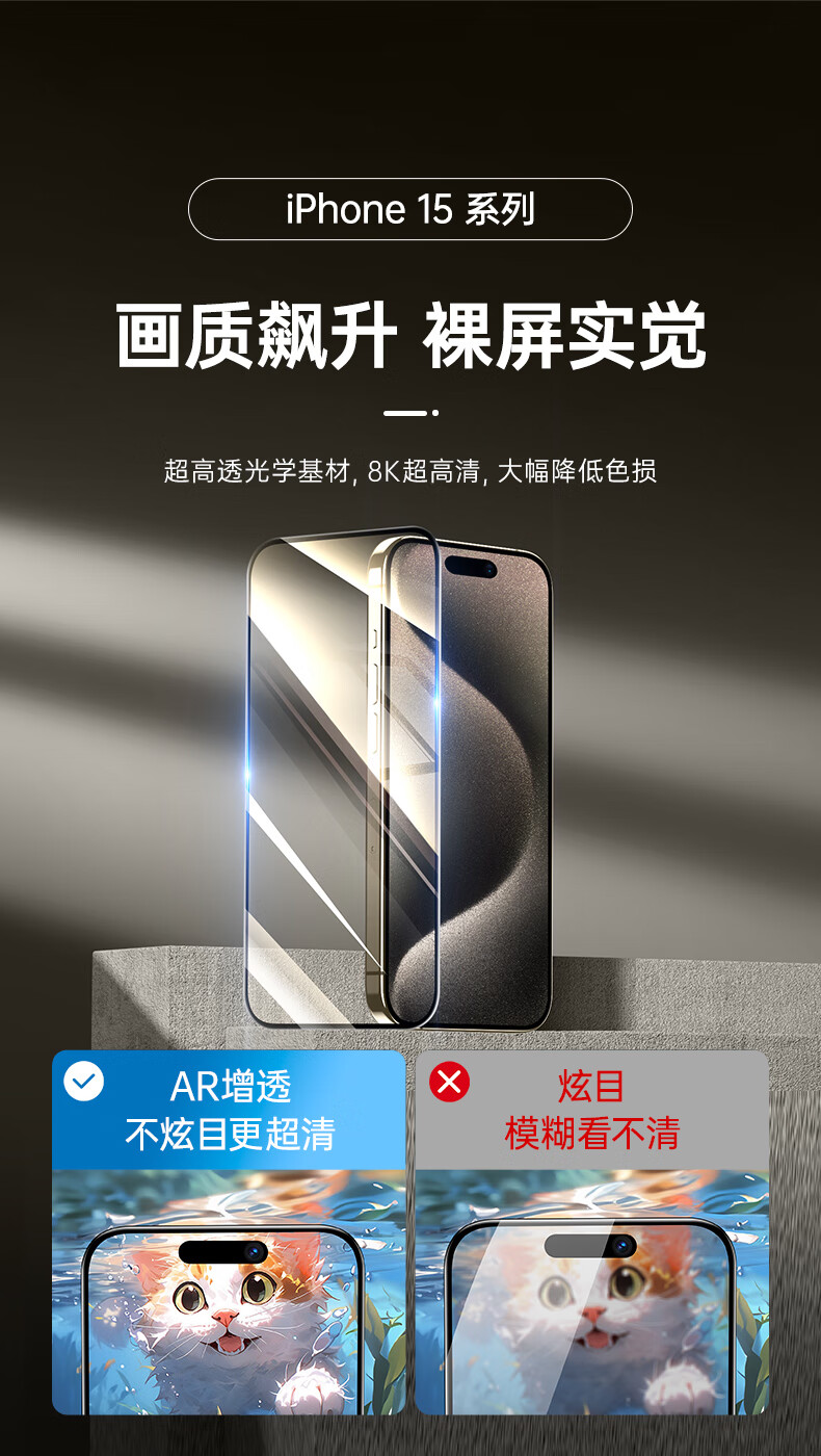 亿色【2片】适用iphone15promax钢化膜苹果15 promax钢化手机膜高清抗指纹全包贴膜全覆盖防摔手机前膜