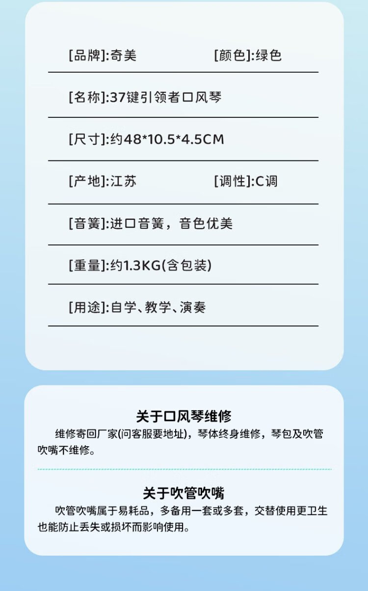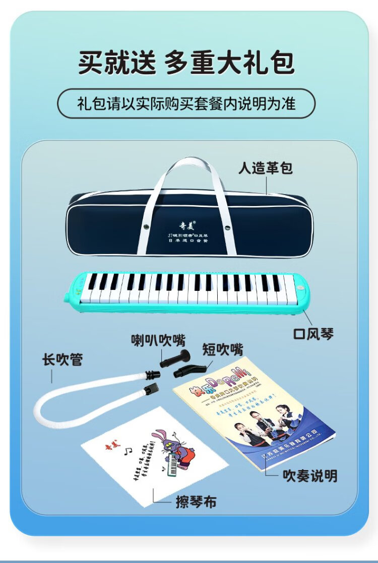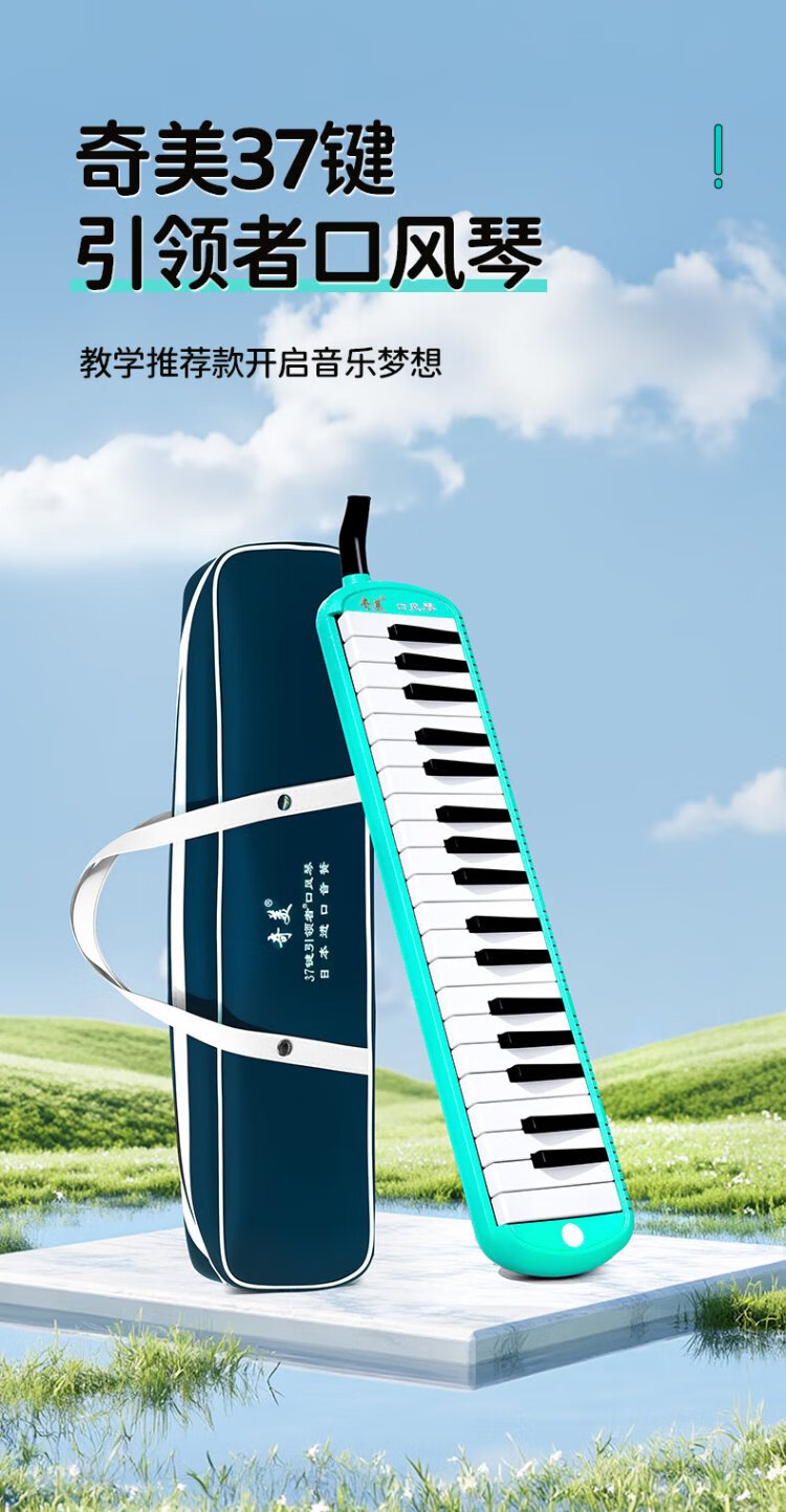 奇美37键引领者课堂推荐口风琴(绿色、皮革包、配教材、学校专用)