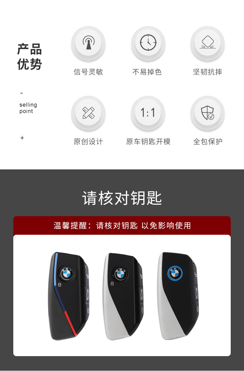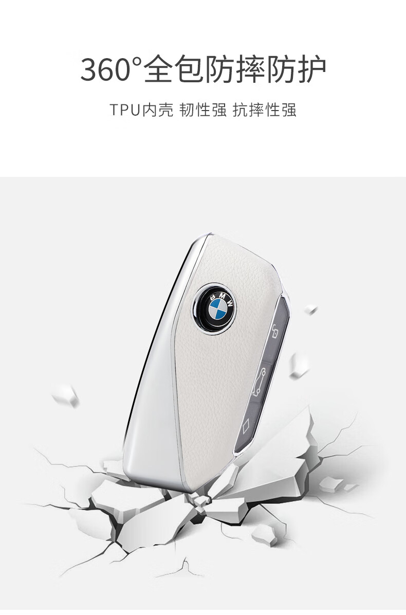迪加伦宝马钥匙套25款X1 新7系735 740li X7 i7 XM车钥匙包扣壳 皮革白C