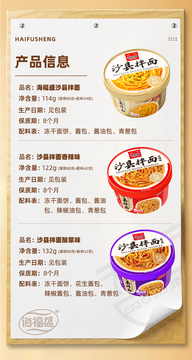 海福盛方便面泡面懒人速食品早餐桶装福建特产沙县拌面混合3味6盒736g