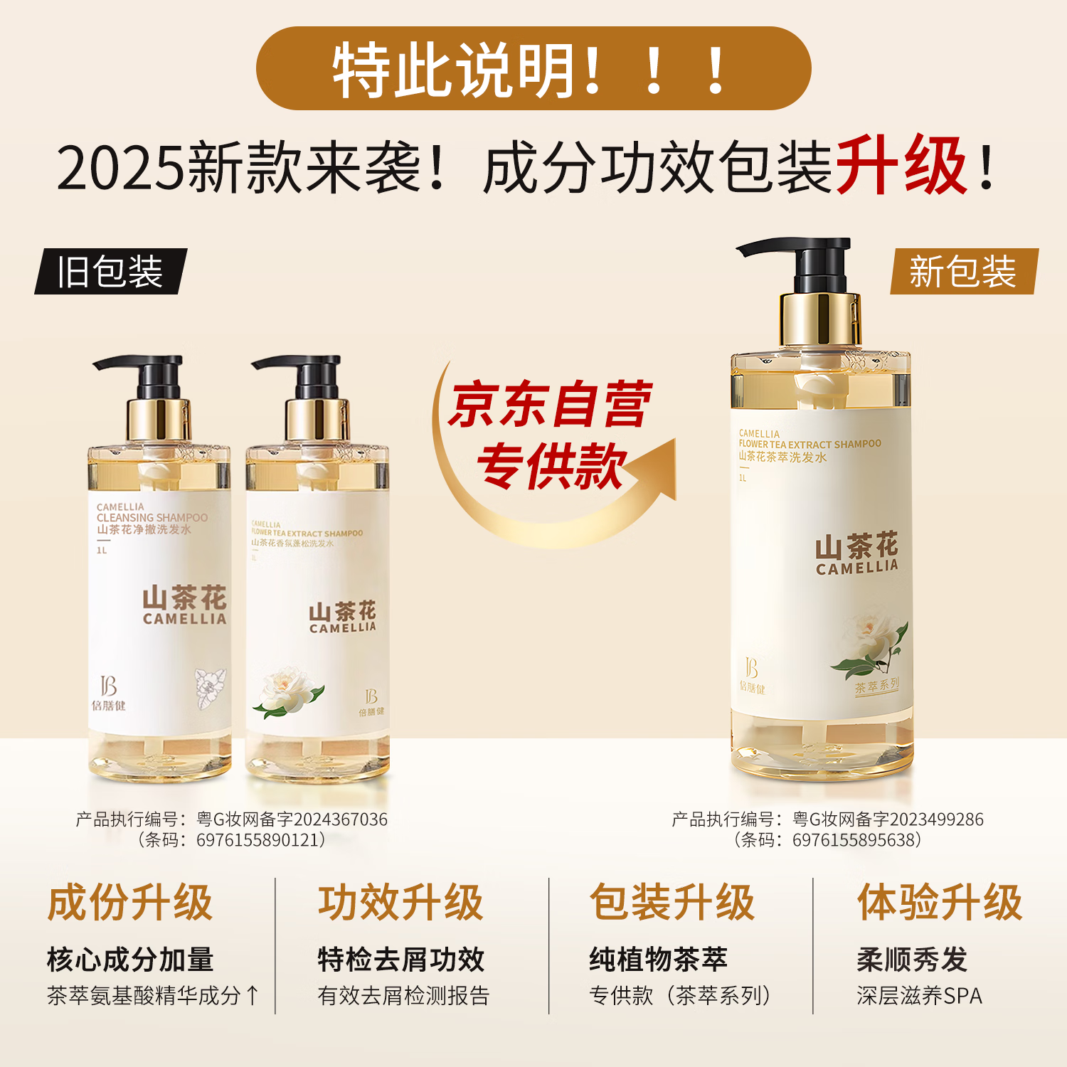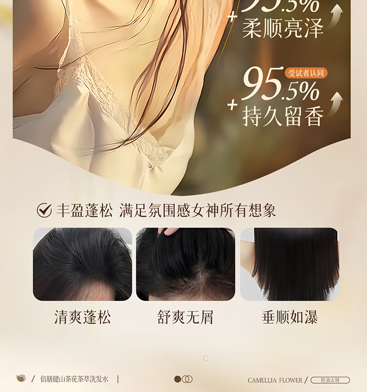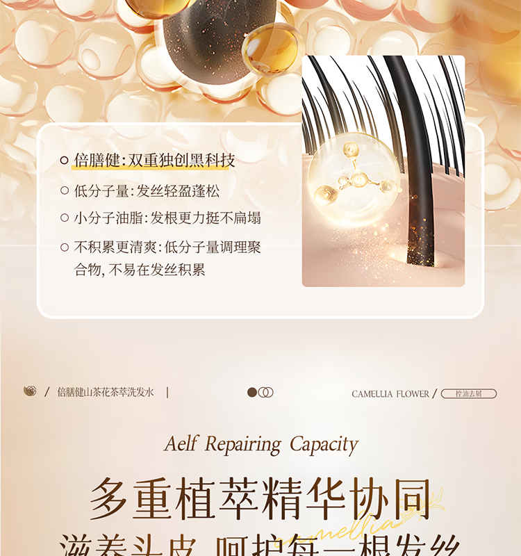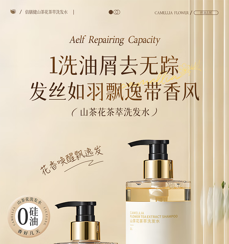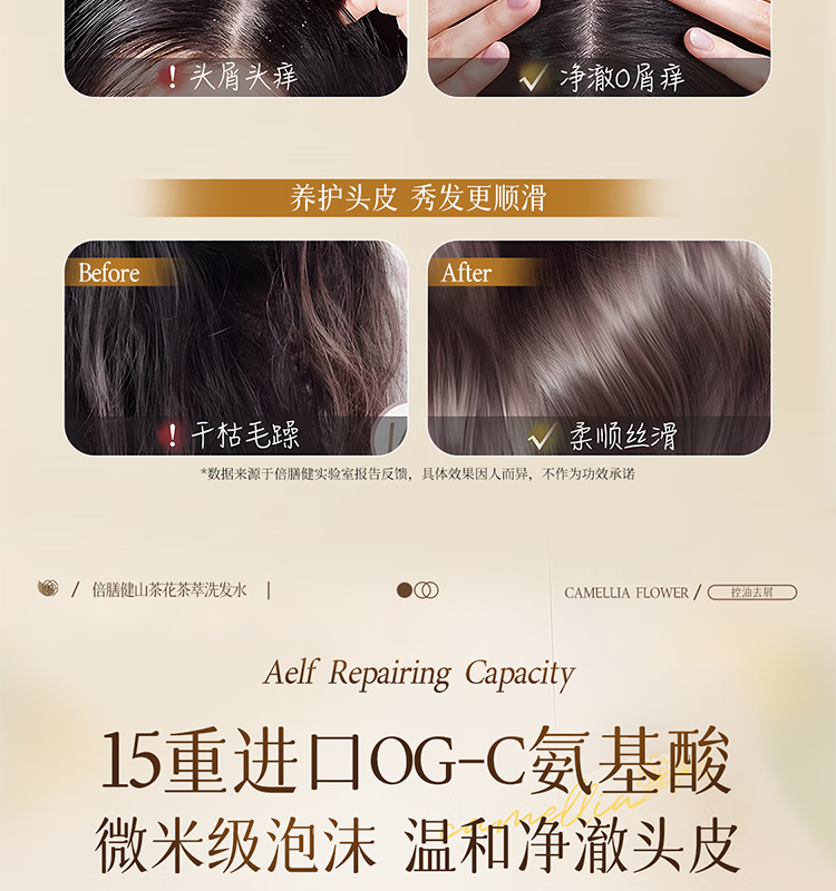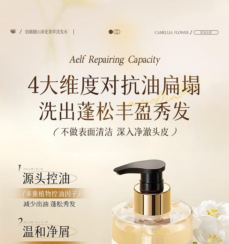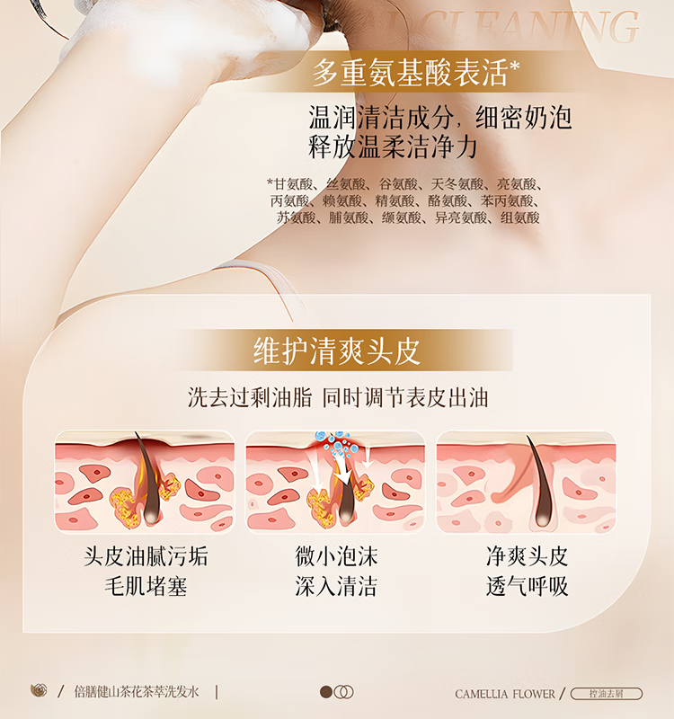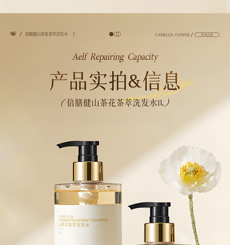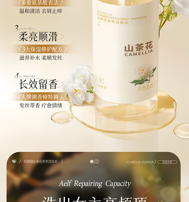 倍膳健山茶花氨基酸洗发水1L去屑控油洗头发膏露蓬松柔顺男女士留香金榜