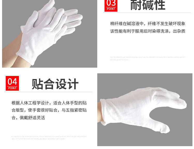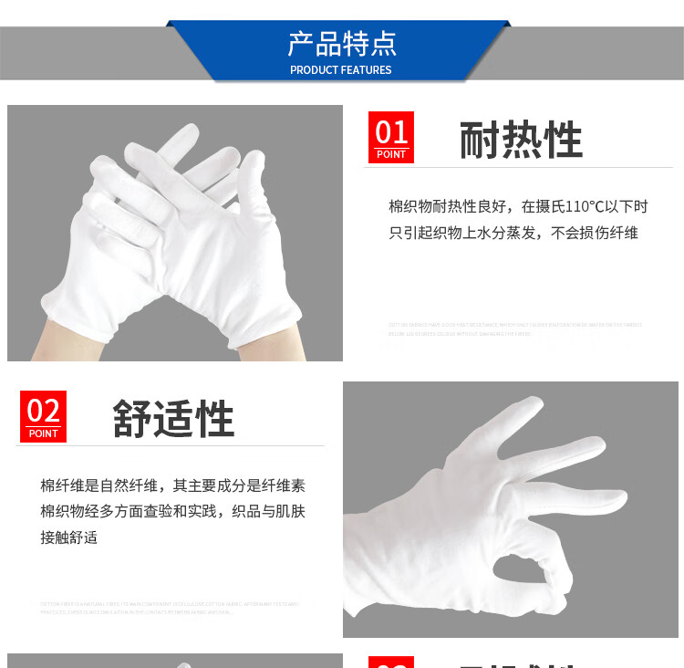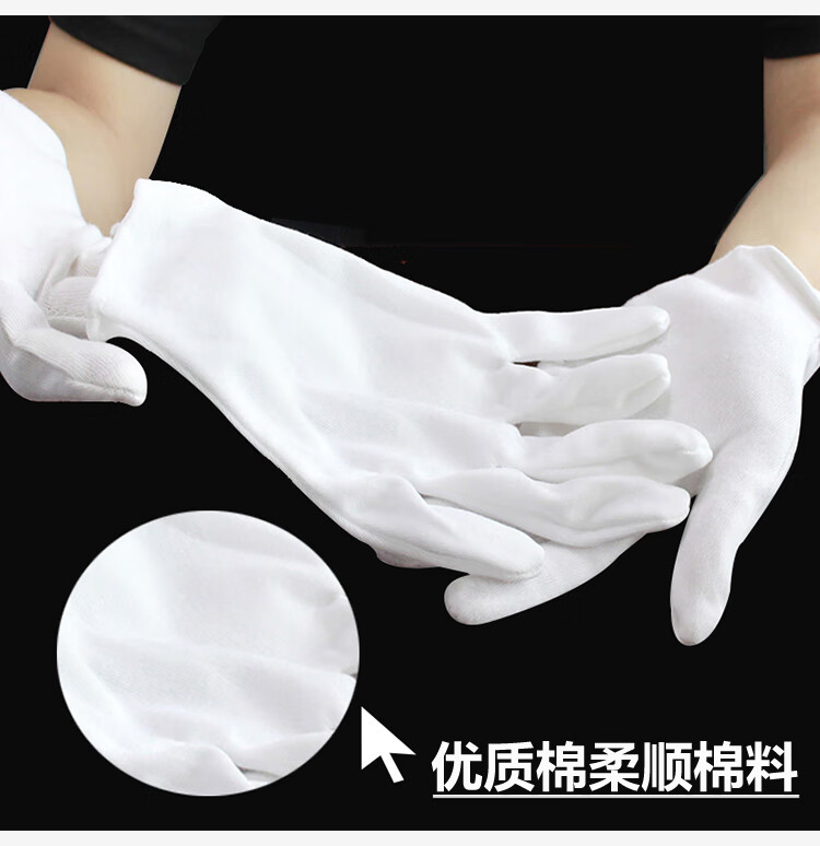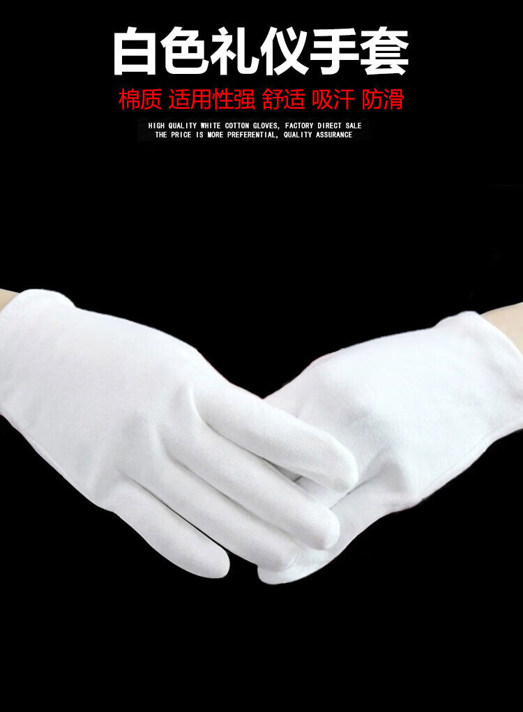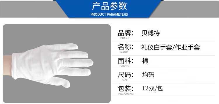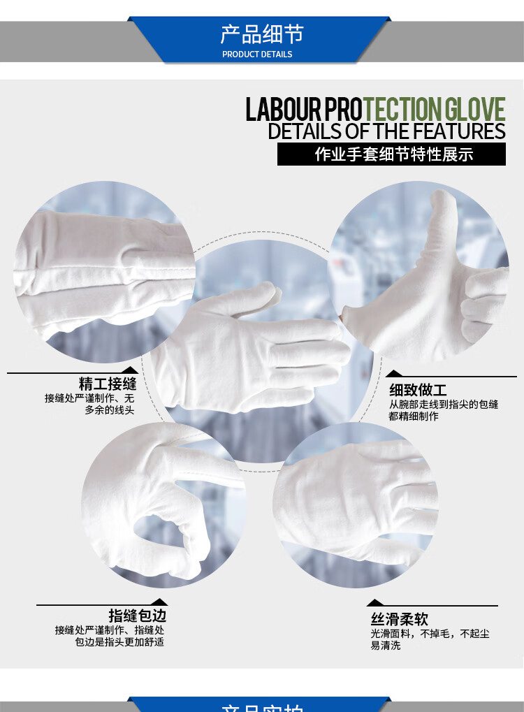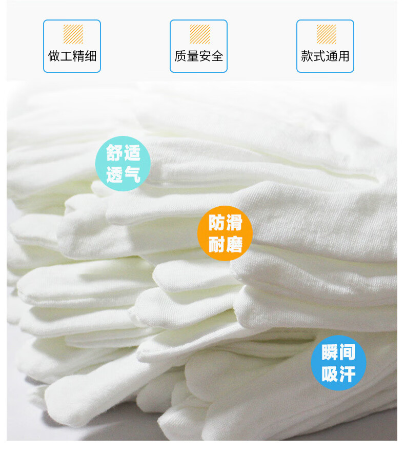 贝傅特 白手套 礼仪手套劳保工作棉汗布开车加厚耐磨手套 【京仓速配】加厚加大款6双