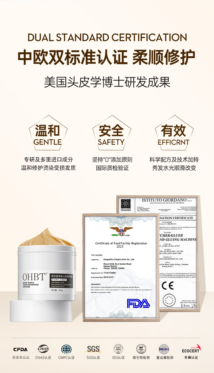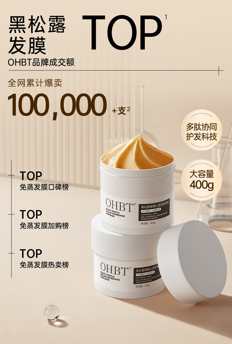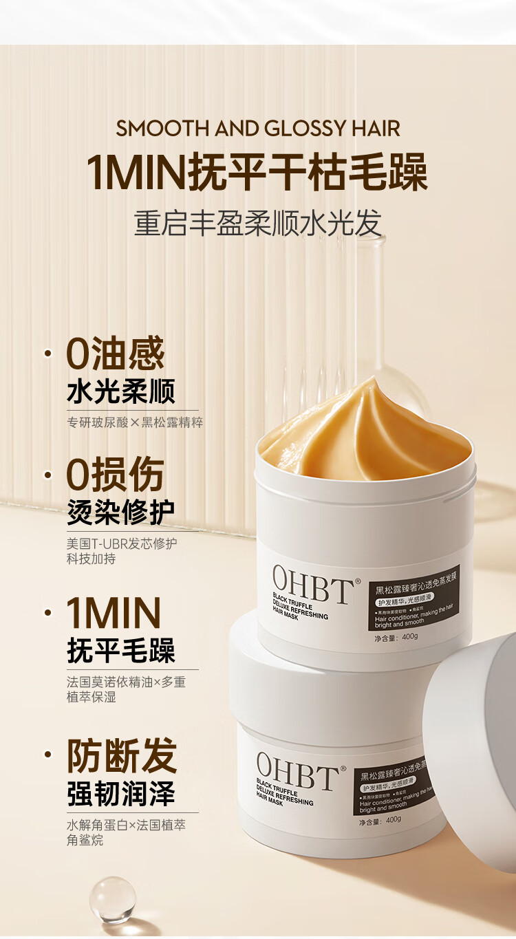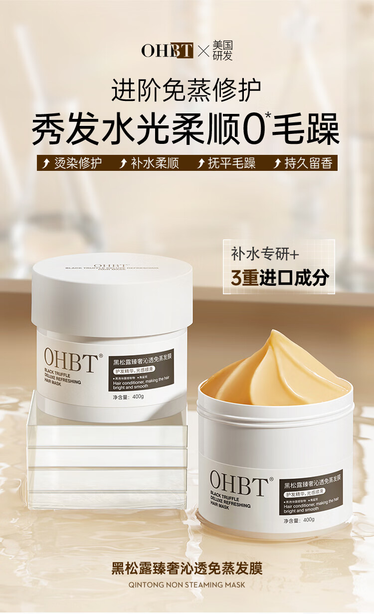 OHBT black truffle evaporation-free mask 400g (conditioner repairs dry hair, improves frizz, smoothes and shines, perm damage)
