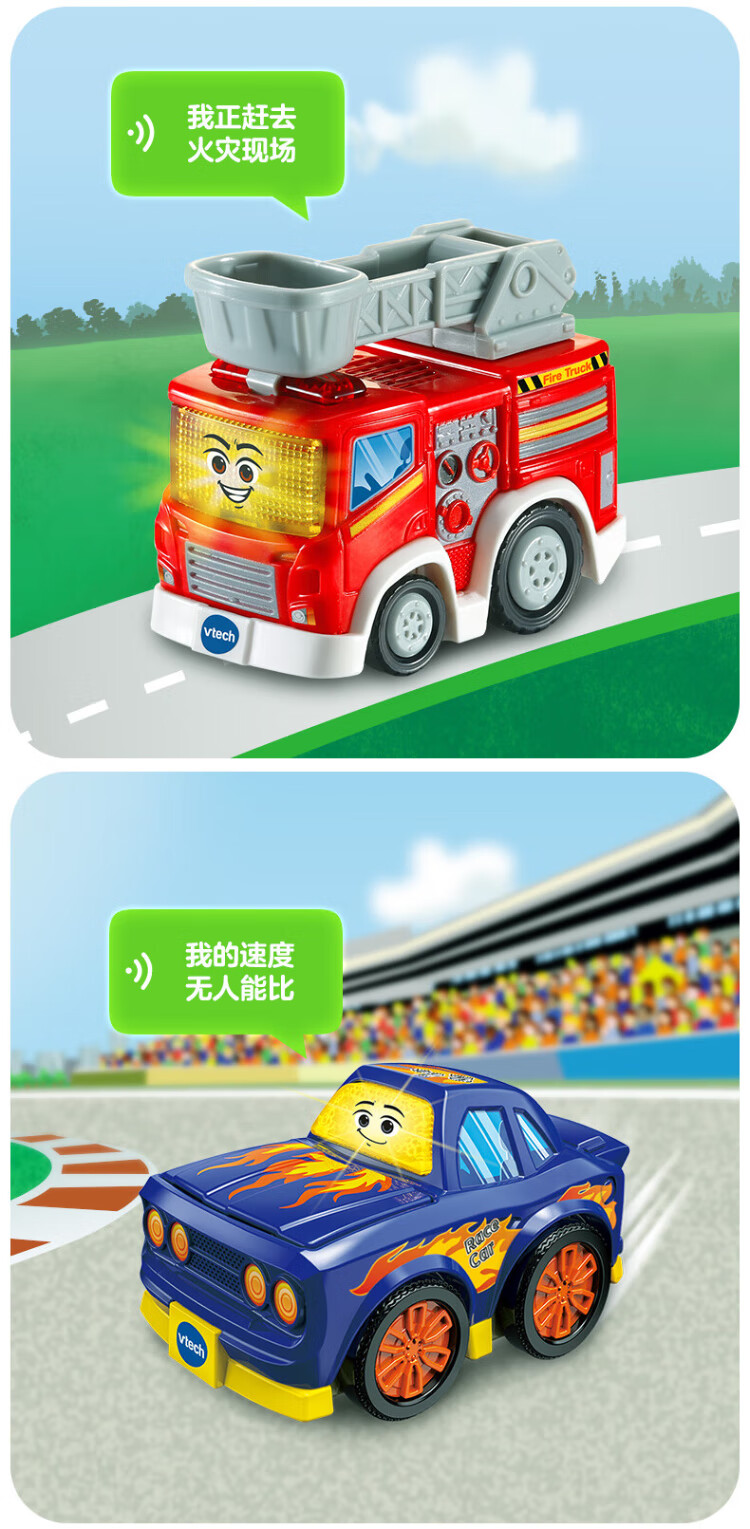 Vtech Kinderspielzeug-Schienenauto mit Geschwindigkeitsmodifikation, Rennmusik, Sound und Licht, Auto für Jungen und Mädchen, Geburtstagsgeschenk
