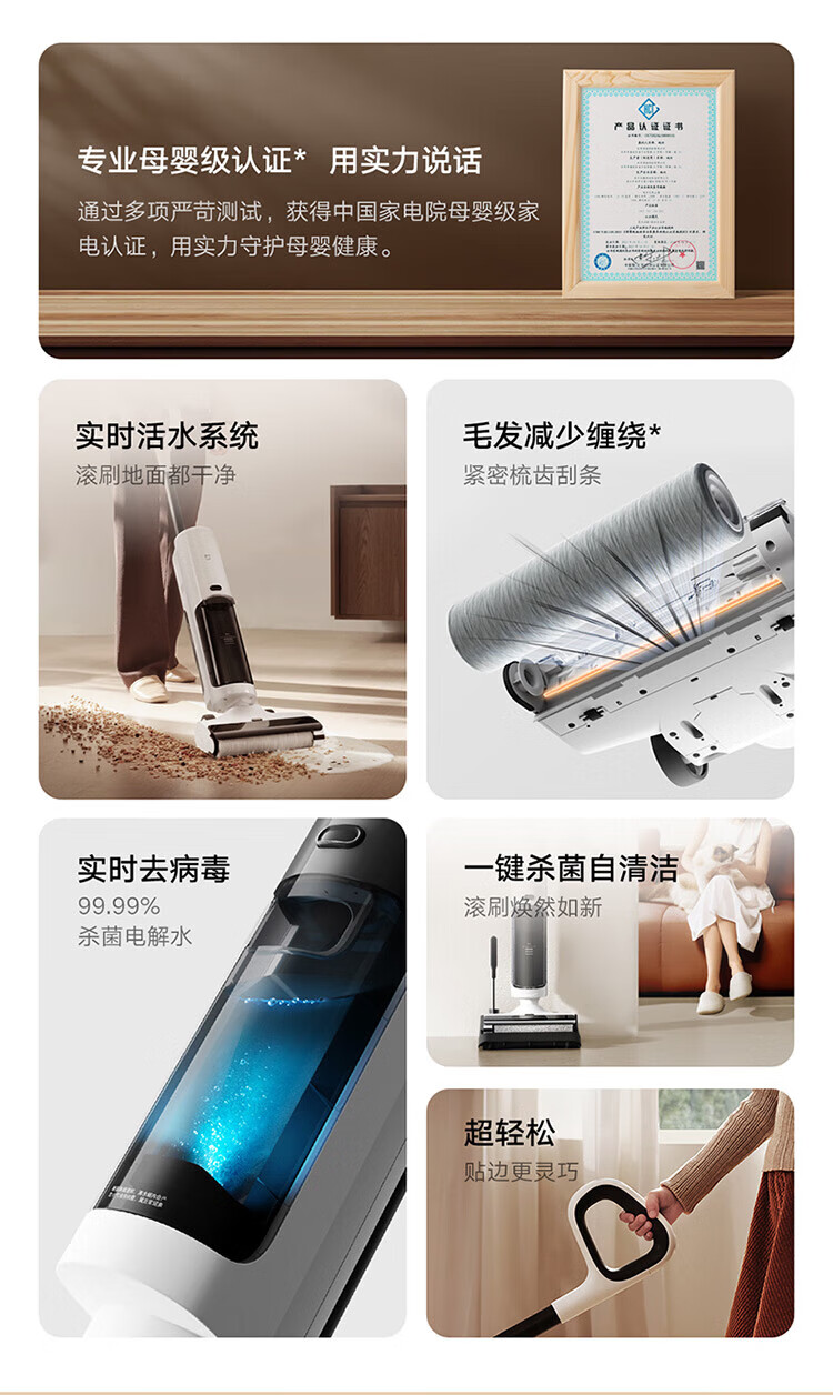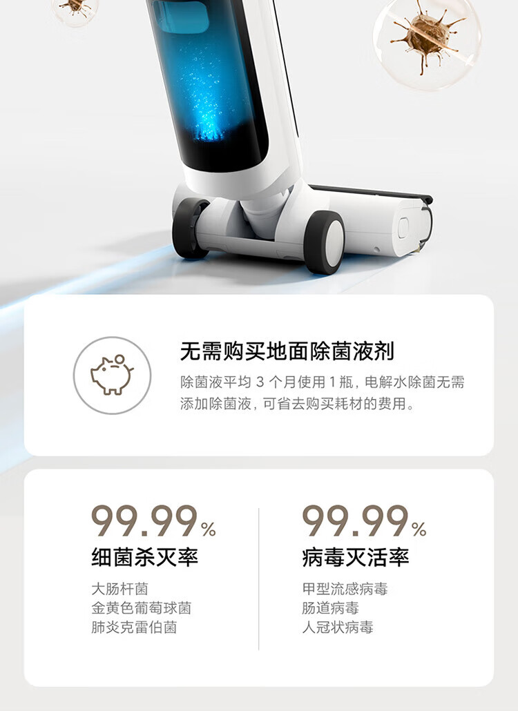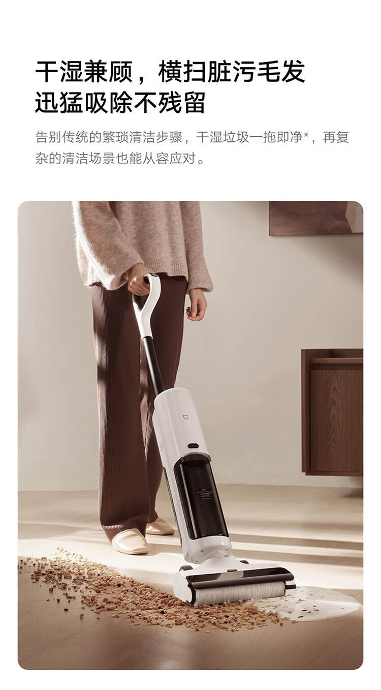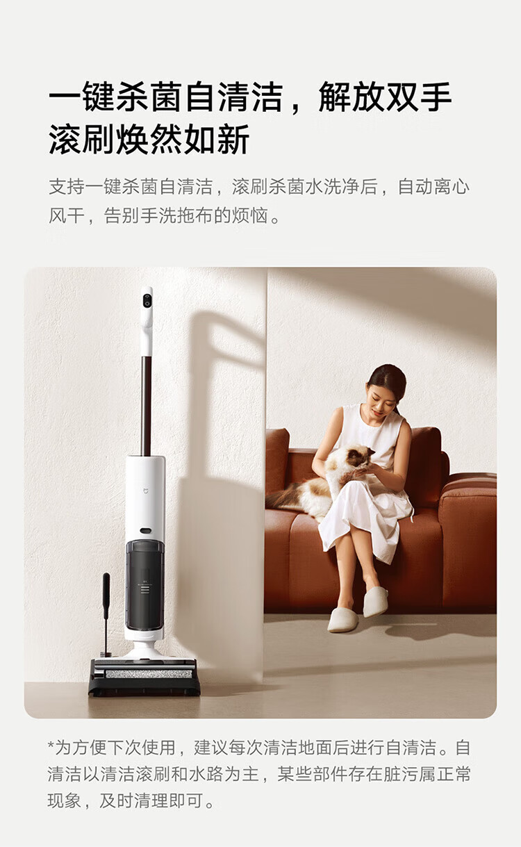 米家小米无线洗地机2C 家用吸拖洗一体 实时电解水杀菌 沿边扫拖自清洁 手持吸尘滚刷防缠绕