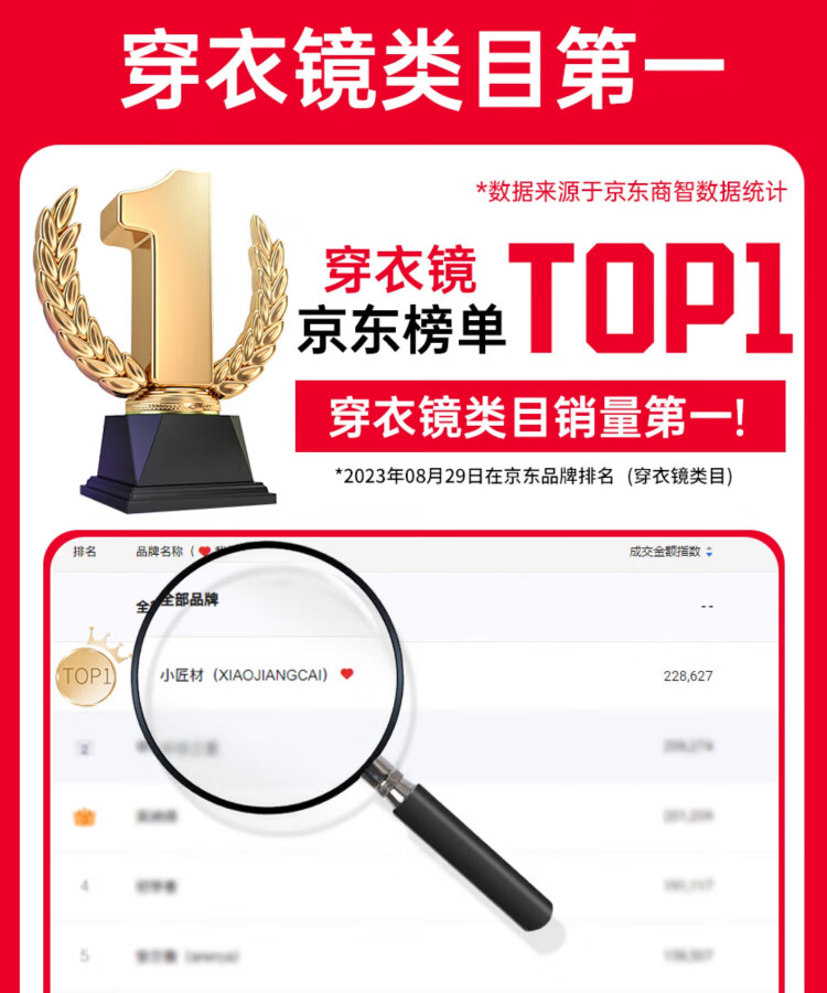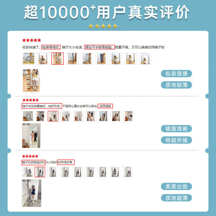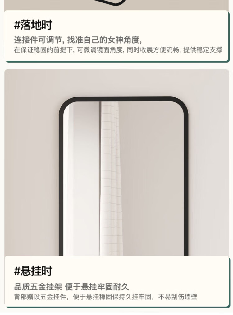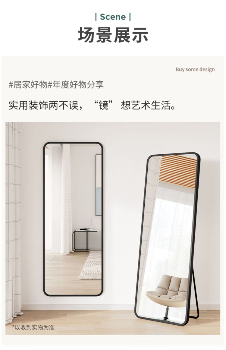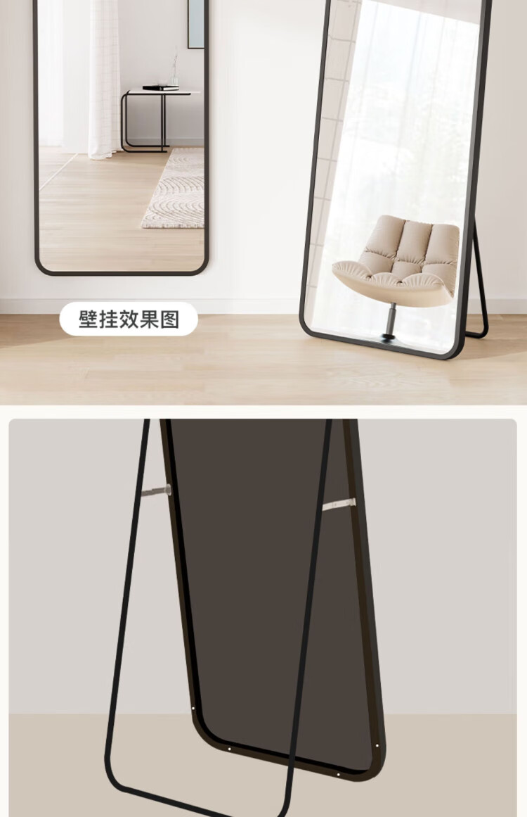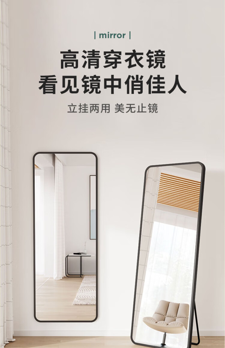 小匠材全身镜穿衣镜家用卧室宿舍网红落地镜铝合金镜子试衣镜白50*158
