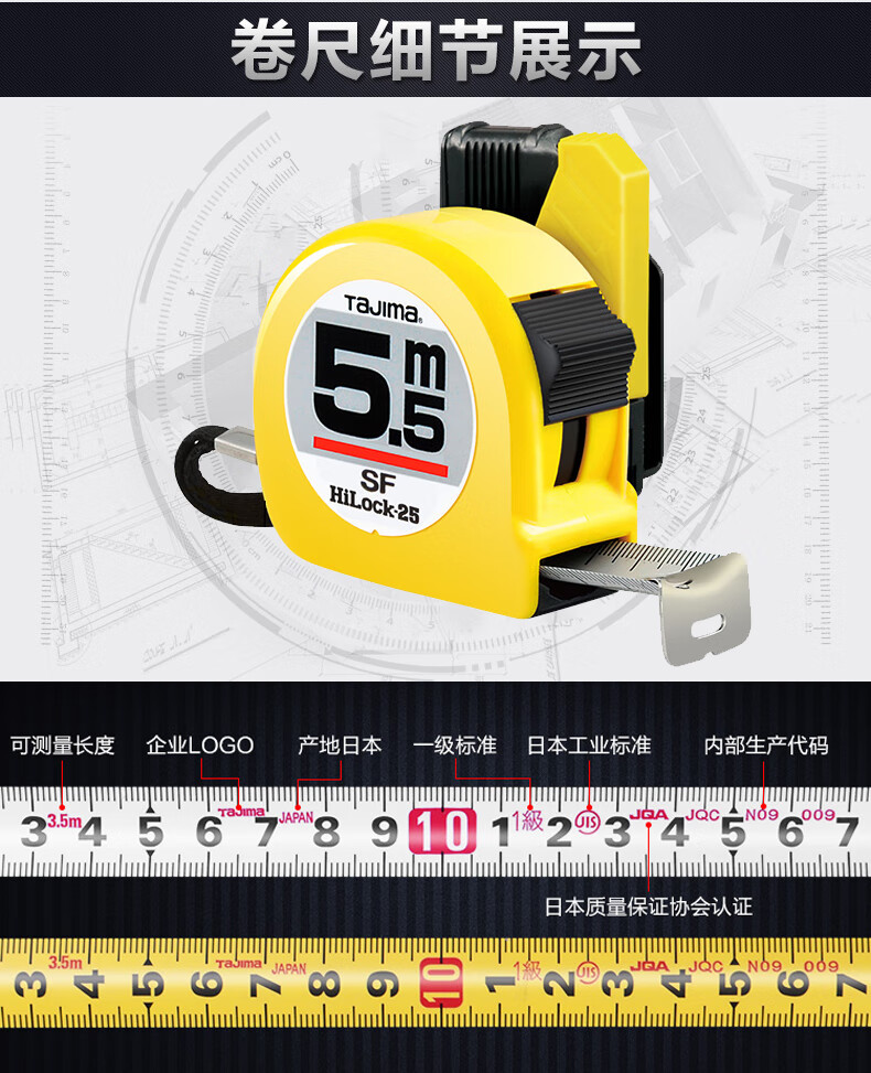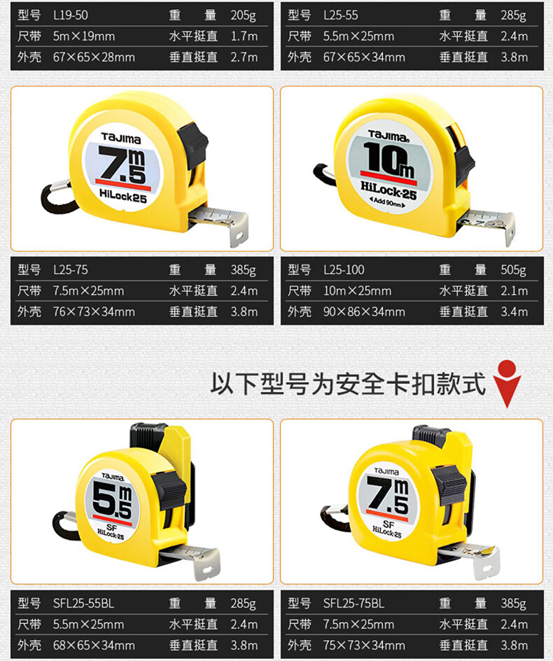 Tajima 7.5m steel tape measure metric measuring tool 25mm wide L2575 1001-0036