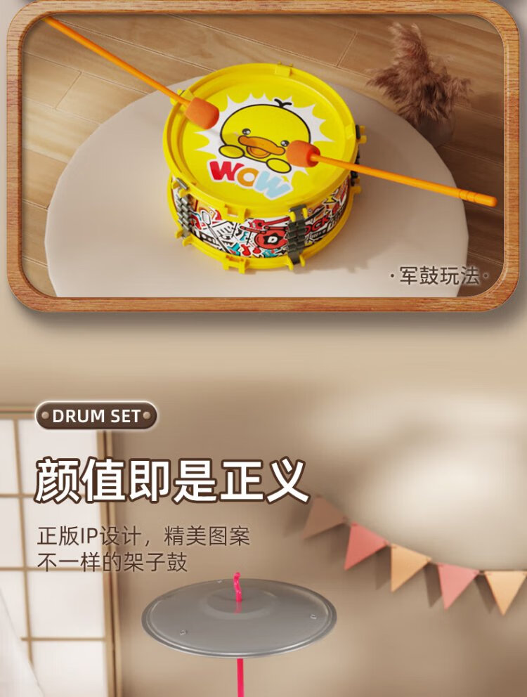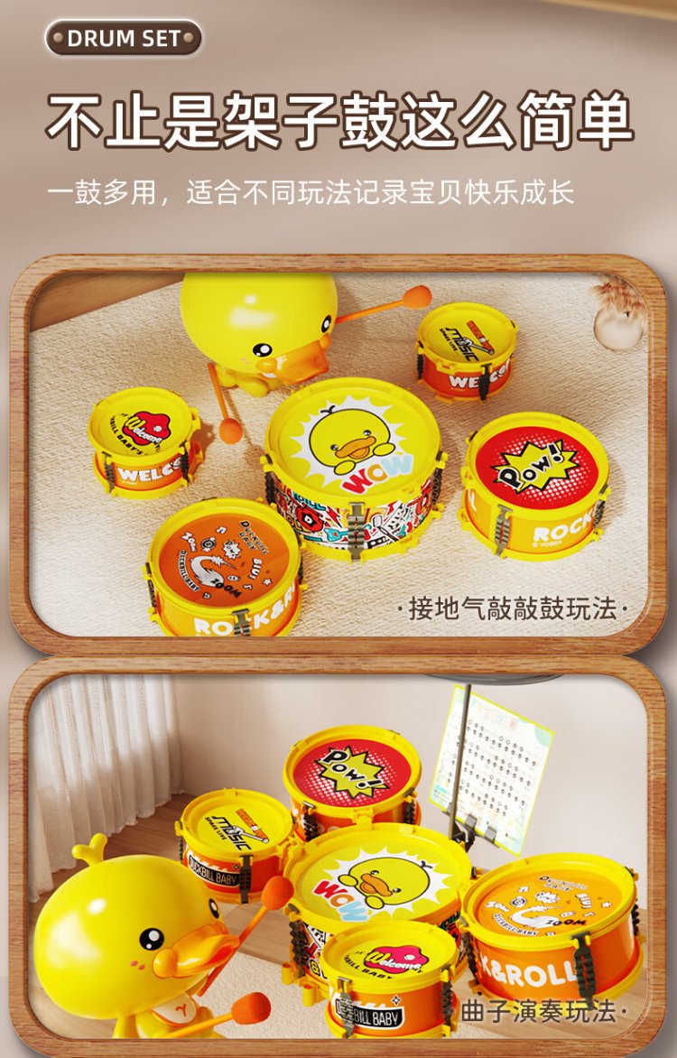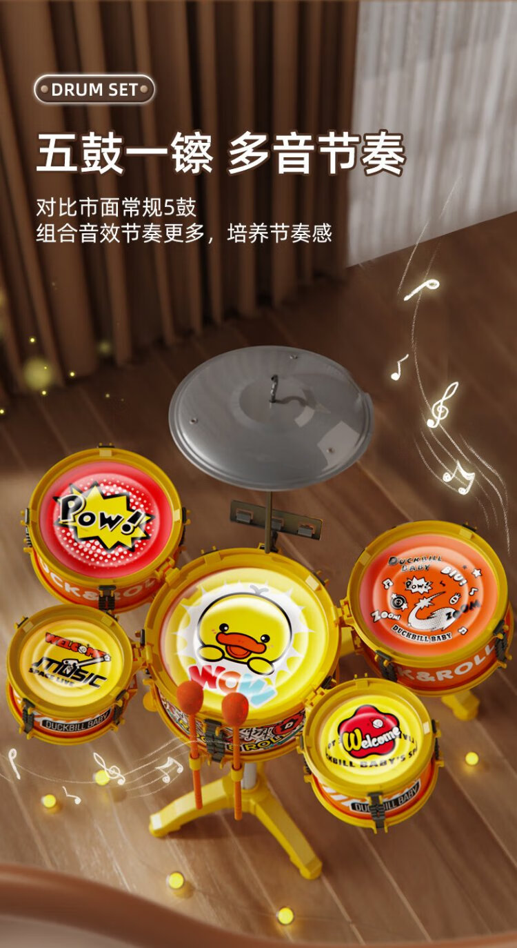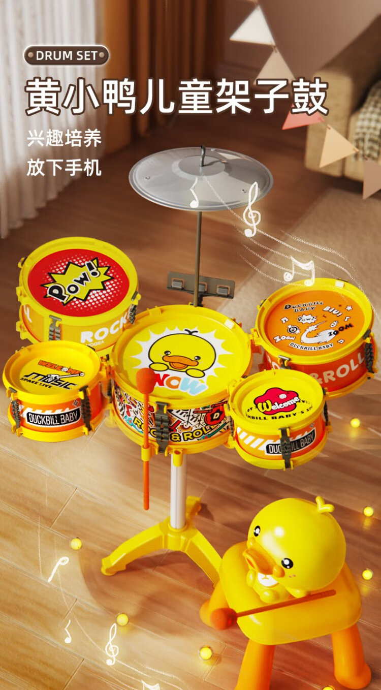 鑫思特(XST)儿童黄小鸭爵士鼓玩具初学者乐器架子鼓2岁3宝宝鼓男女孩生日礼物