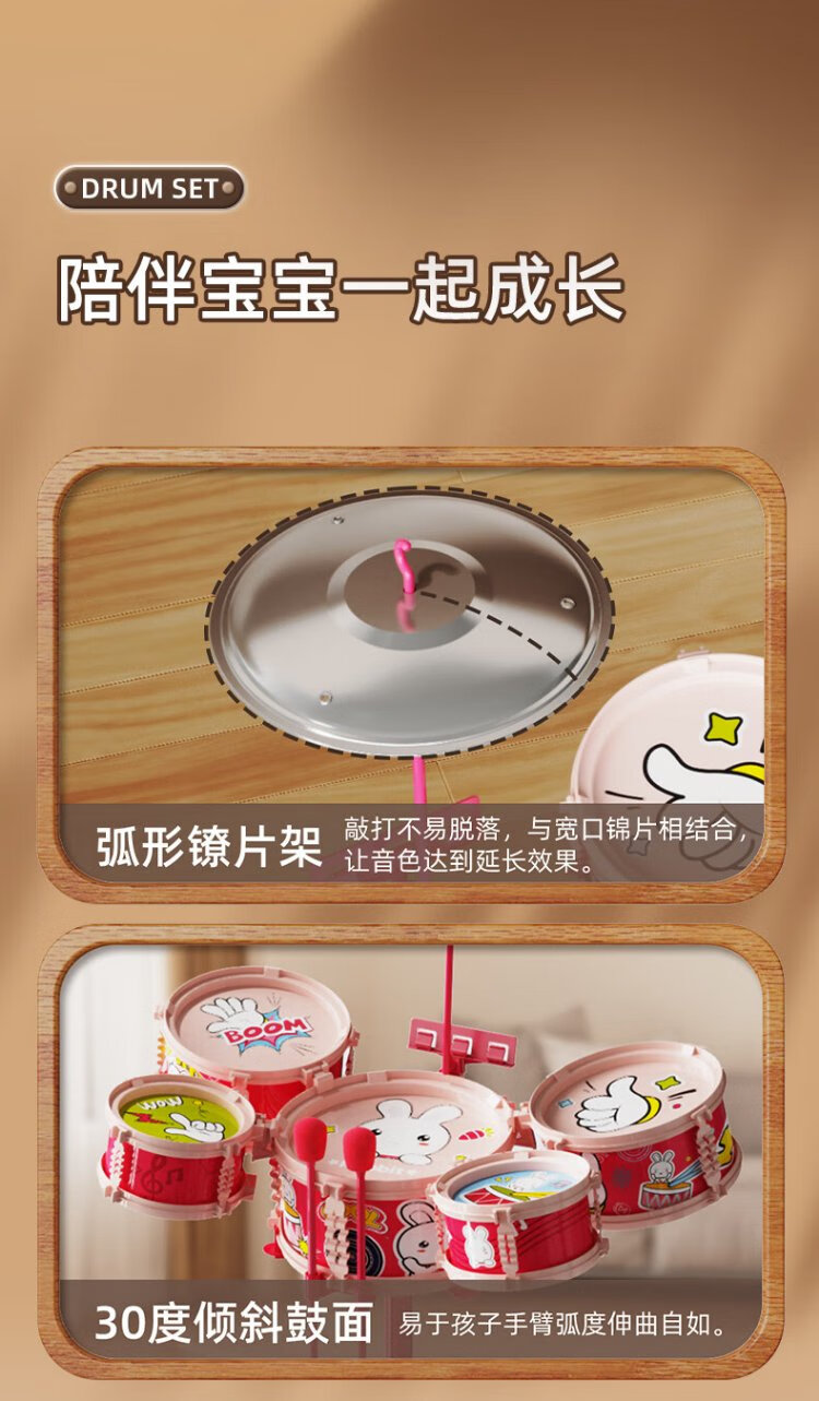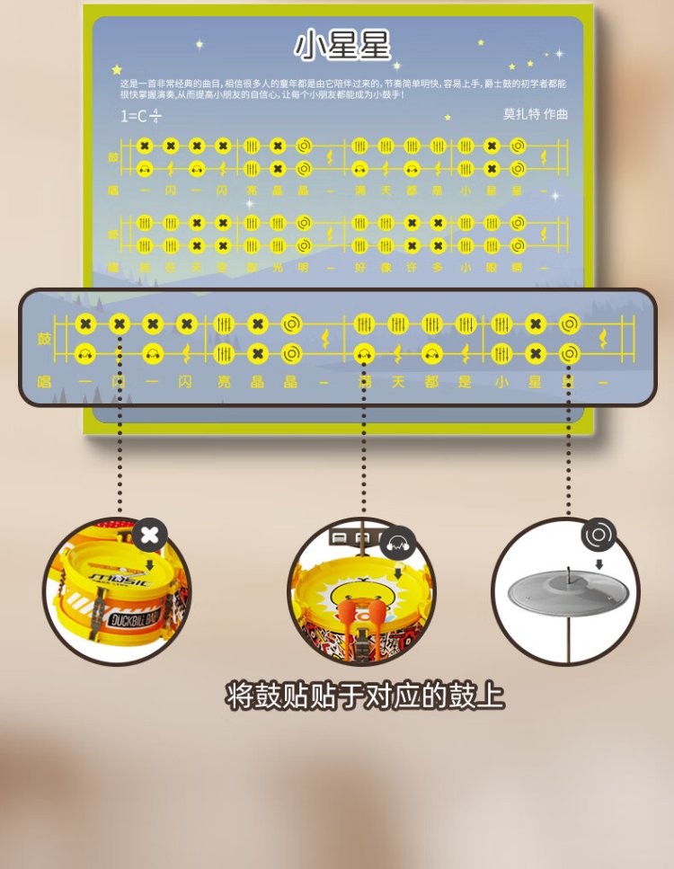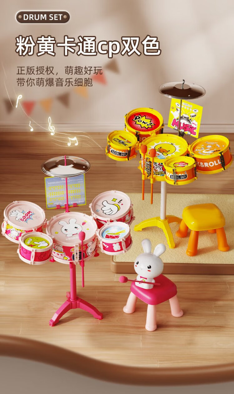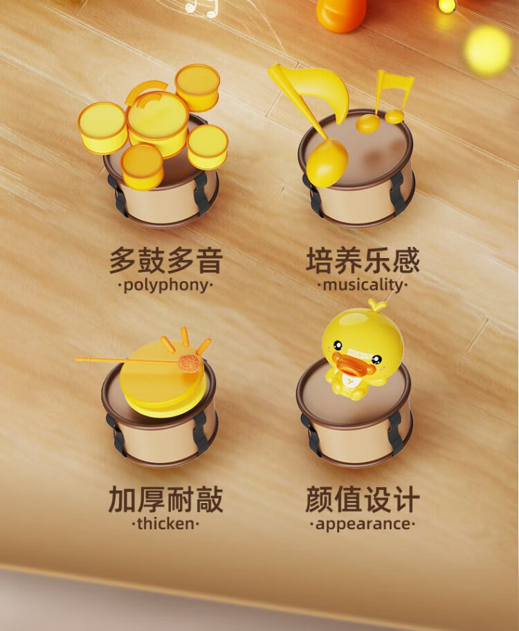 鑫思特(XST)儿童黄小鸭爵士鼓玩具初学者乐器架子鼓2岁3宝宝鼓男女孩生日礼物