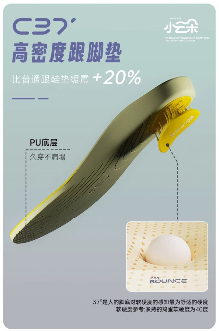 安踏小云朵鞋垫男士运动鞋垫减震缓冲抗扭足弓垫舒适军训支撑透气