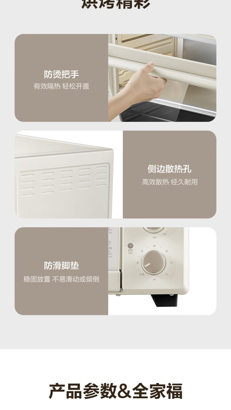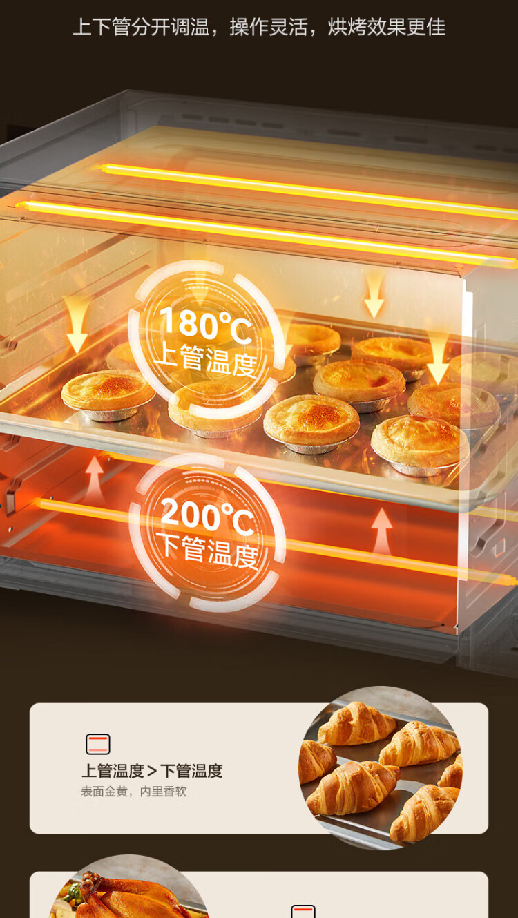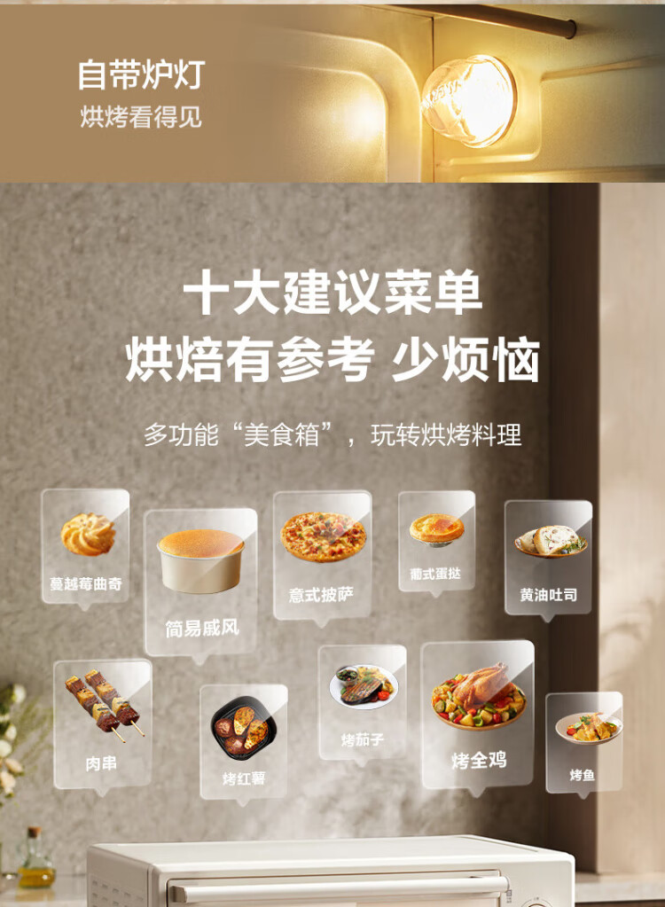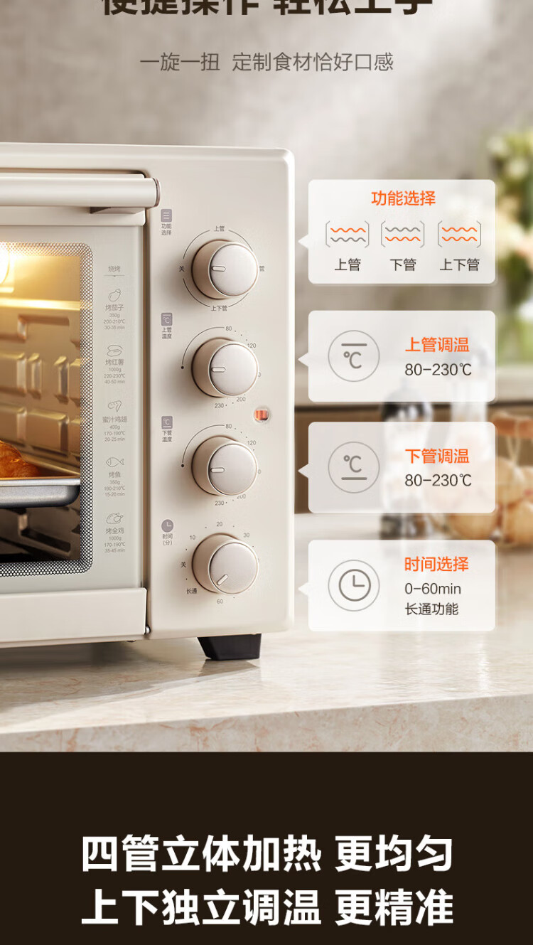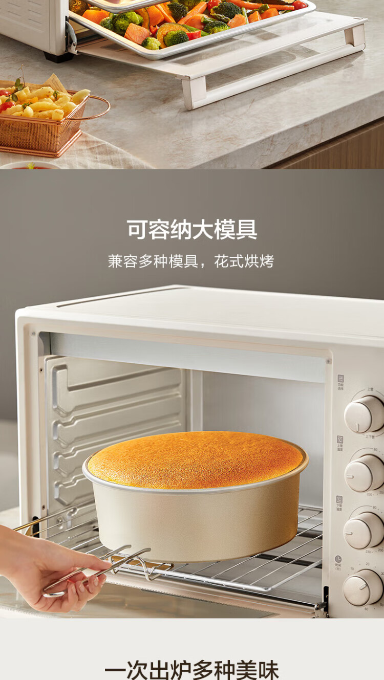 SUPOR national subsidy household multi-functional large-capacity 42L electric oven with upper and lower independent temperature control with oven light multi-layer baking position professional baking cream white OJ42A802