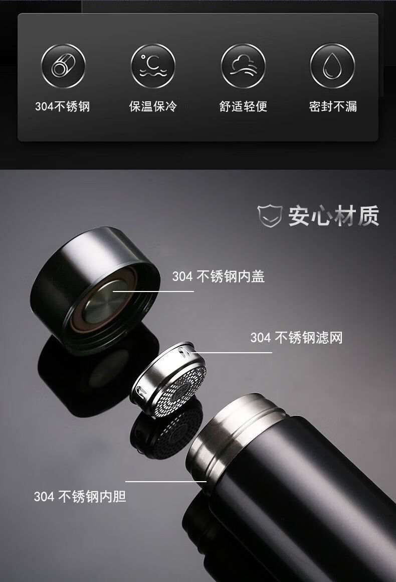 Fuguang 316 stainless steel thermos cup, intelligent temperature display car business gift water cup