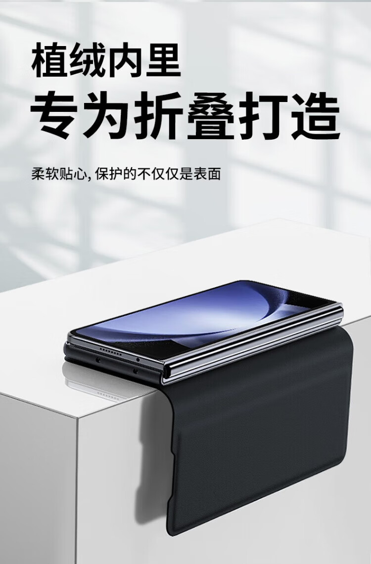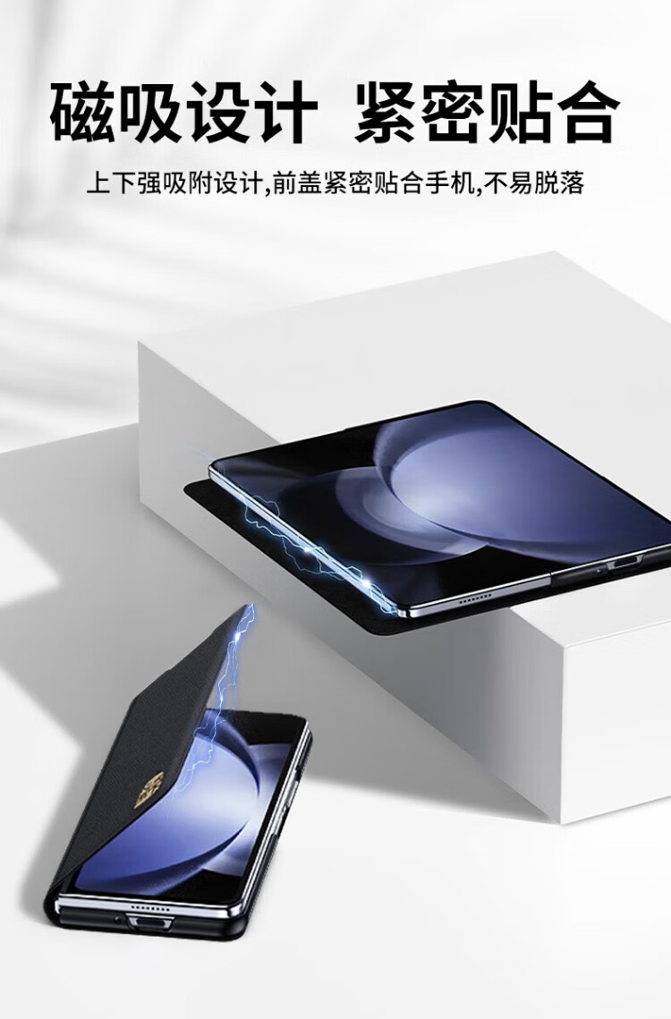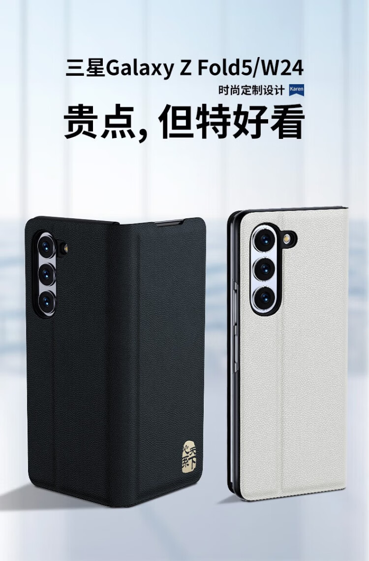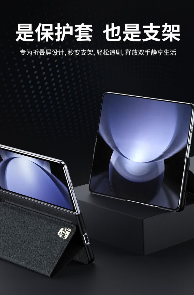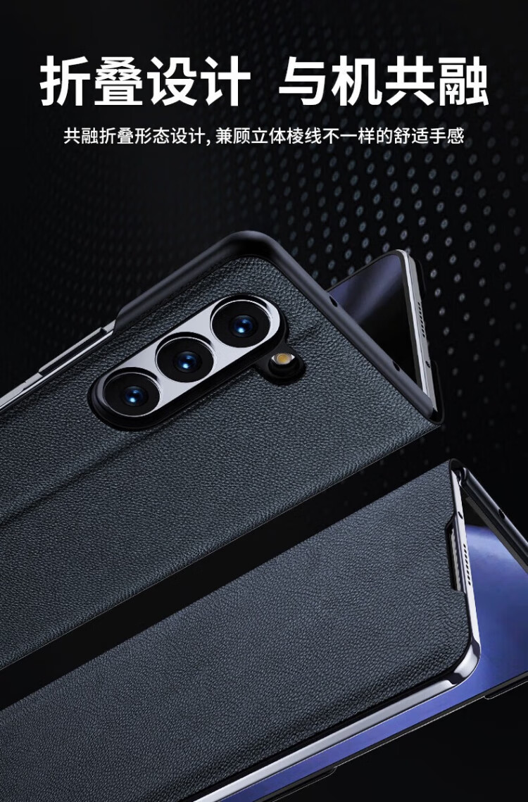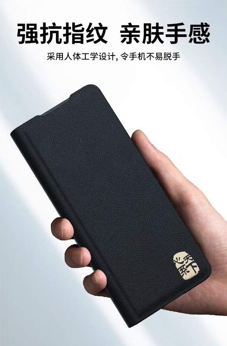 至朗尼 适用三星fold5手机壳Z Fold5/W24心系天下折叠屏保护套真皮磁吸翻盖 玄黑色 三星Fold5/W24通用
