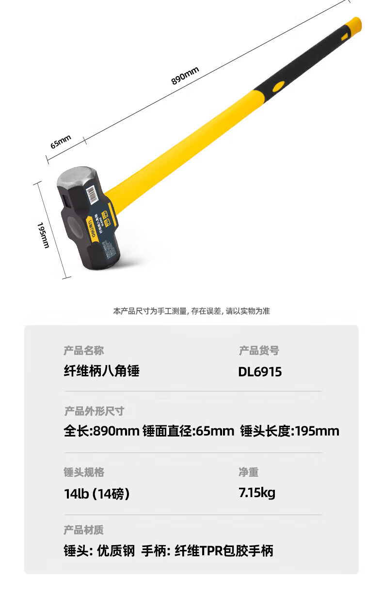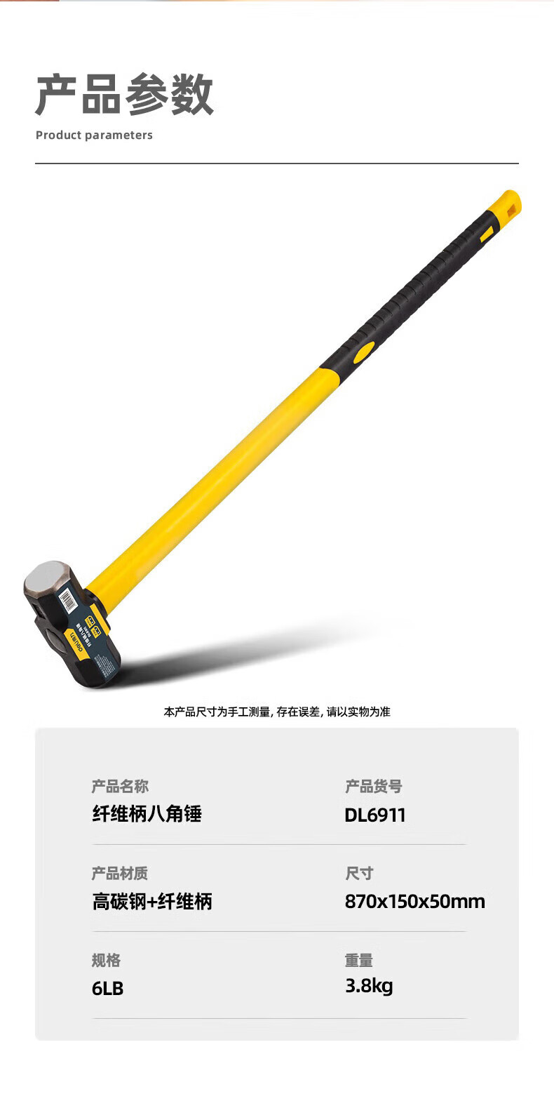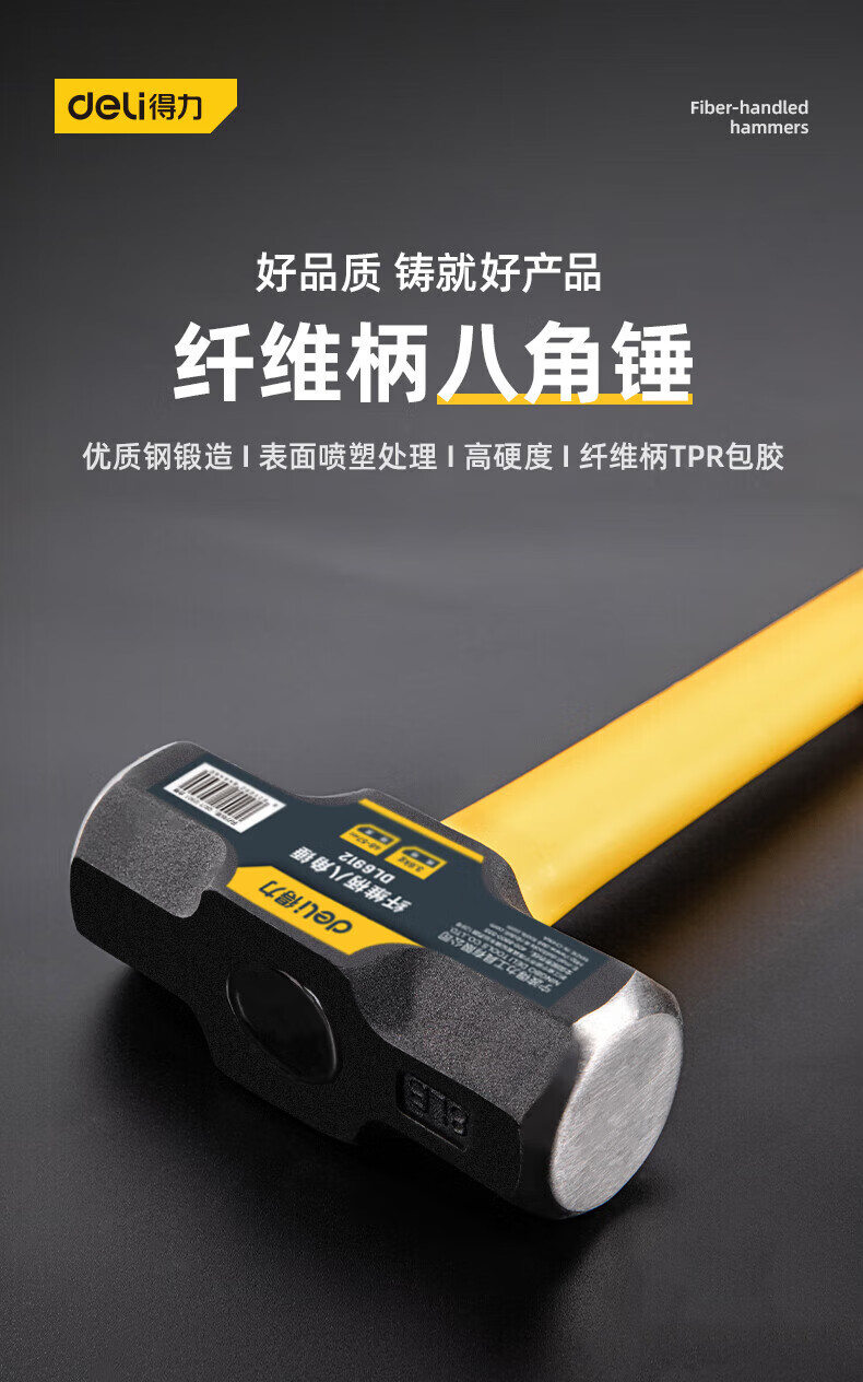 deli得力 纤维柄八角锤锤头榔头锤子 4.53kg DL6913