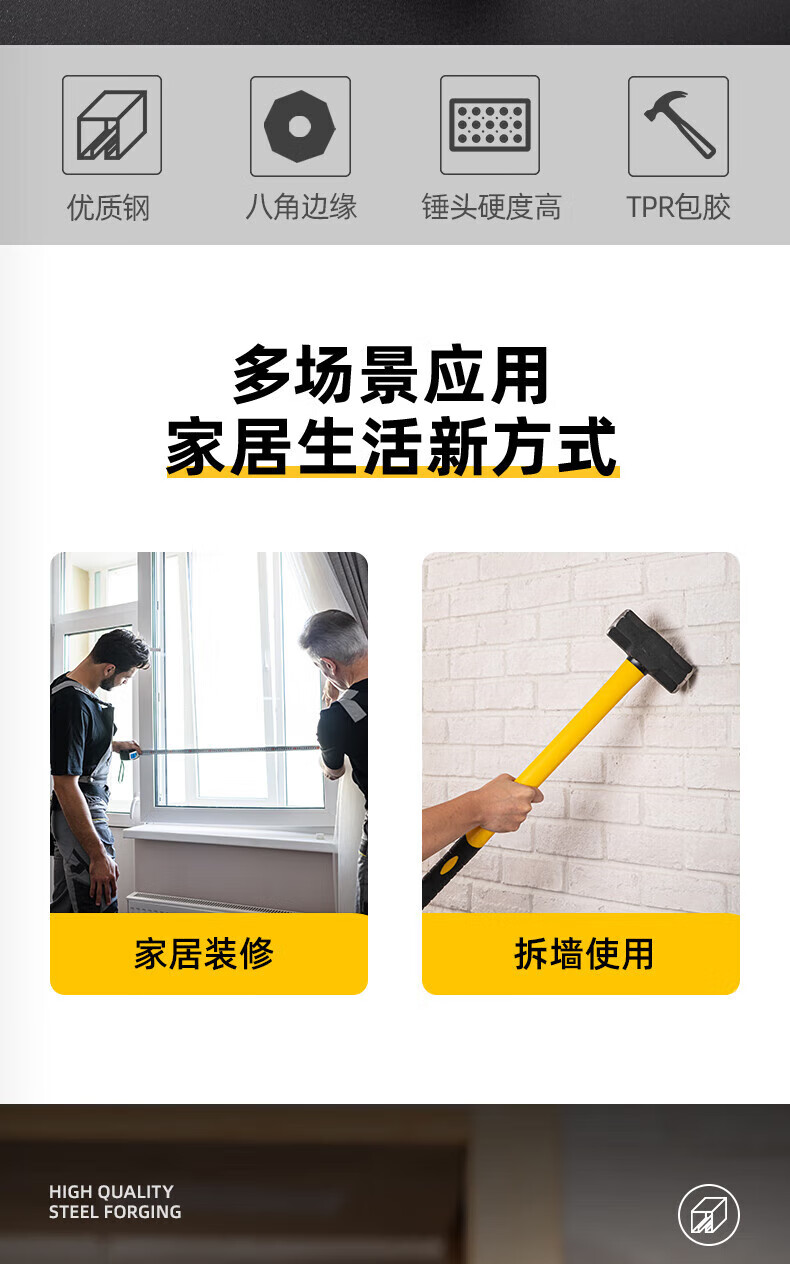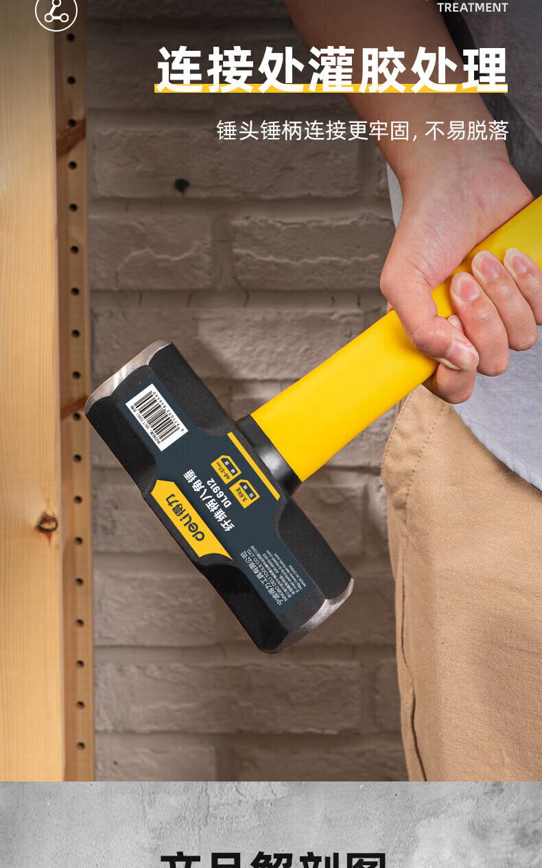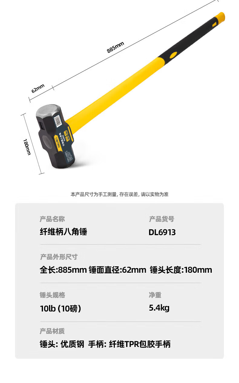 deli得力 纤维柄八角锤锤头榔头锤子 4.53kg DL6913