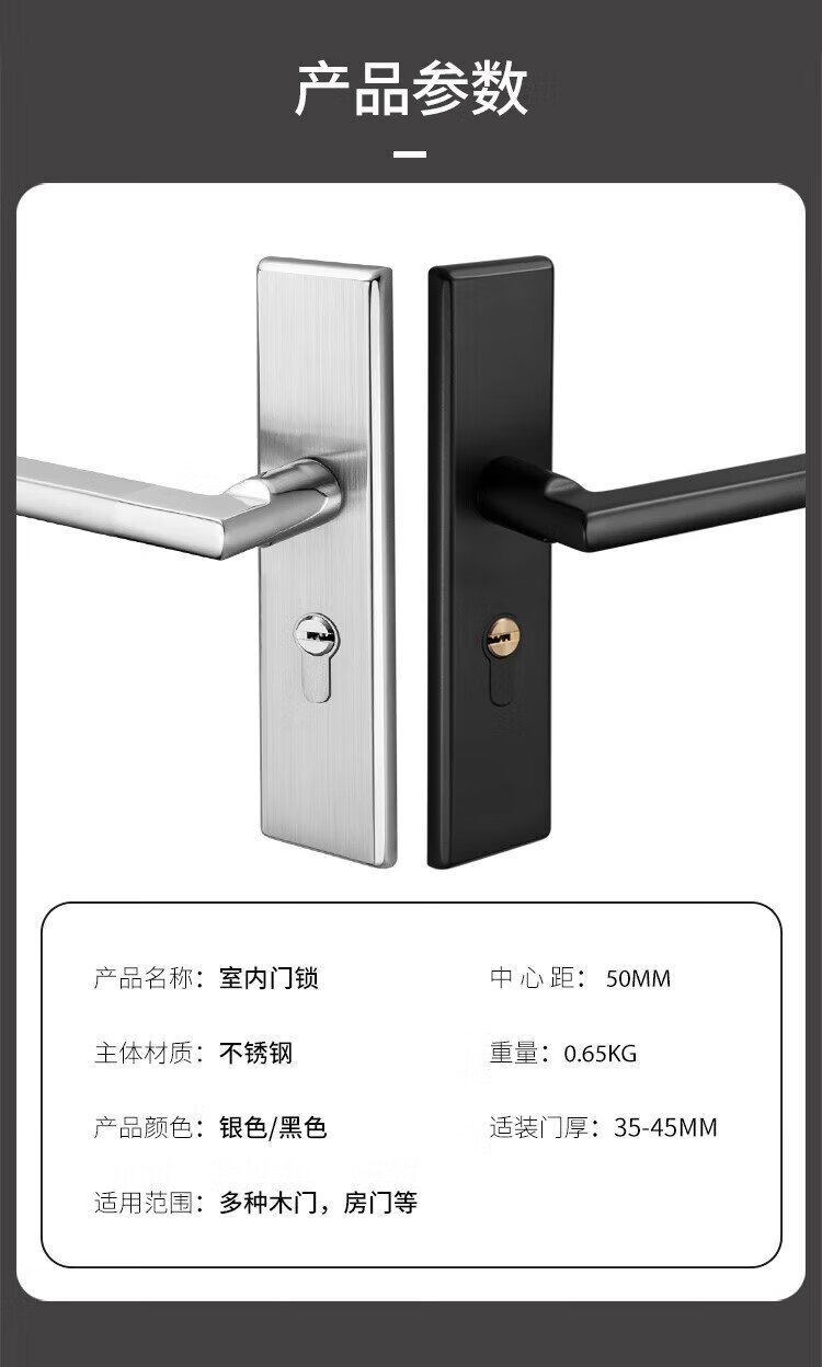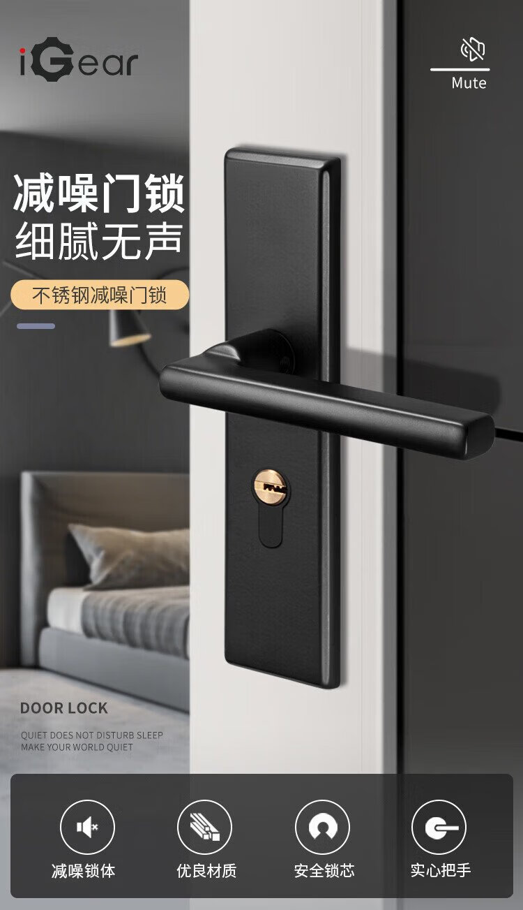 IGear Türschloss für den Innenbereich, Massivholz, Türschlosskern, Schlafzimmer, Schlafsaal, Badezimmer, wasserdicht, rostfrei, Diebstahlschutz, Edelstahl, Türgriff, Schlüssel, Universalschloss, Schließzylinder JS-5010-1