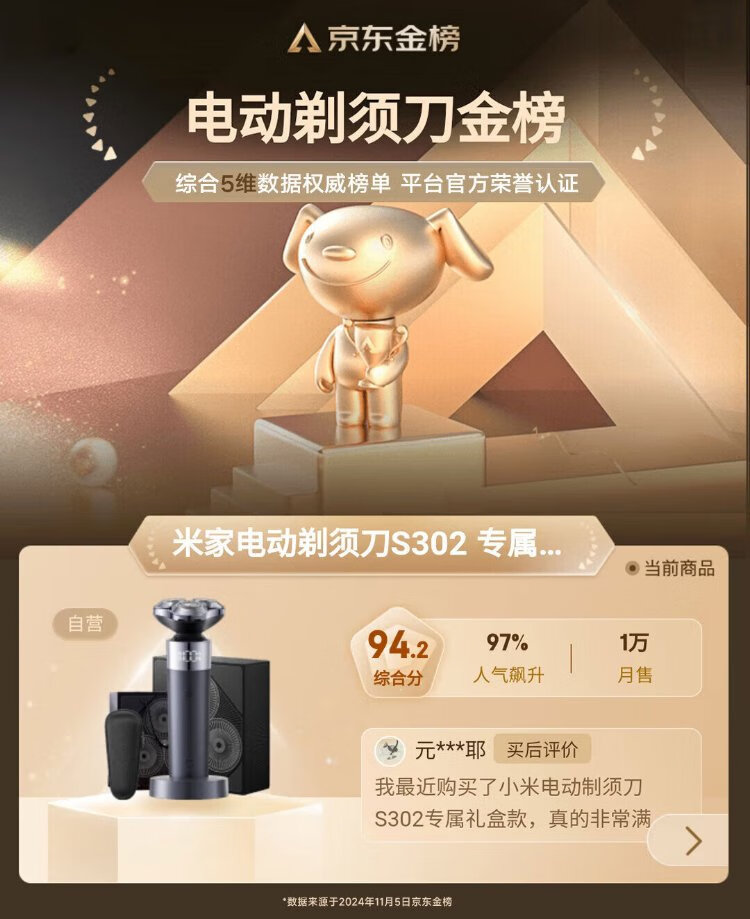 Mijia Electric Shaver S302 Exclusive Gift Box Xiaomi Rotary Shaver Double-Ring Curved Blade Net No Disassembly Quick-Washable Blade Floating Close Shave Gift for Boyfriend’s Birthday