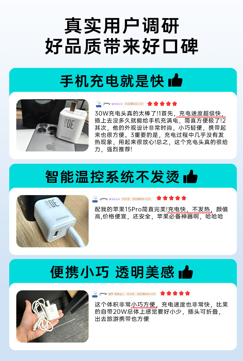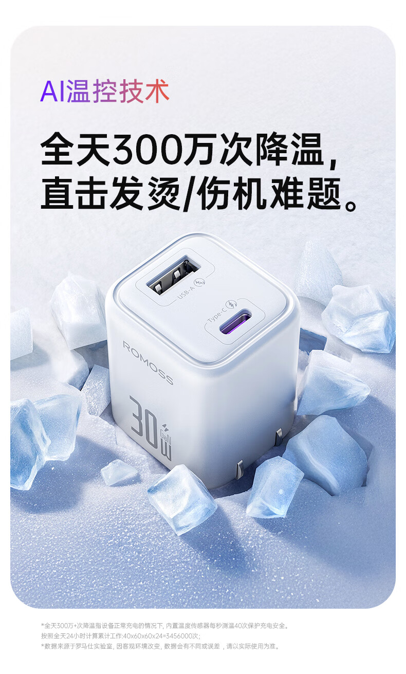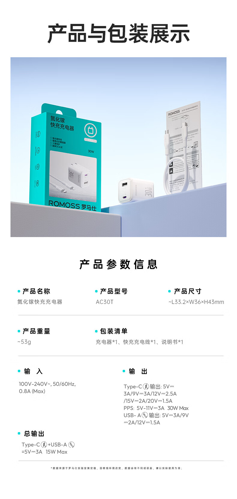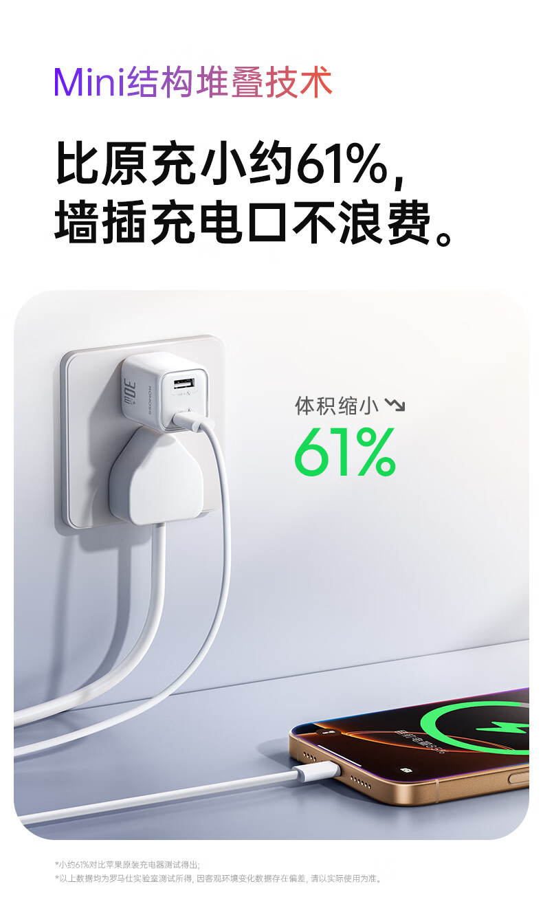 罗马仕苹果充电器30W氮化镓iPhone16/15ProMax快充套装兼容PD20W适用ipad平板Type-C数据线手机快充头