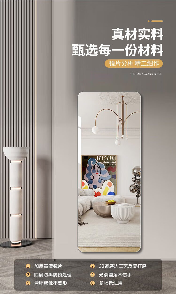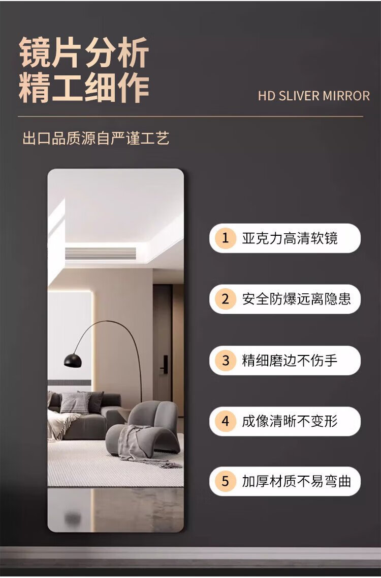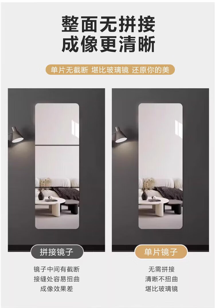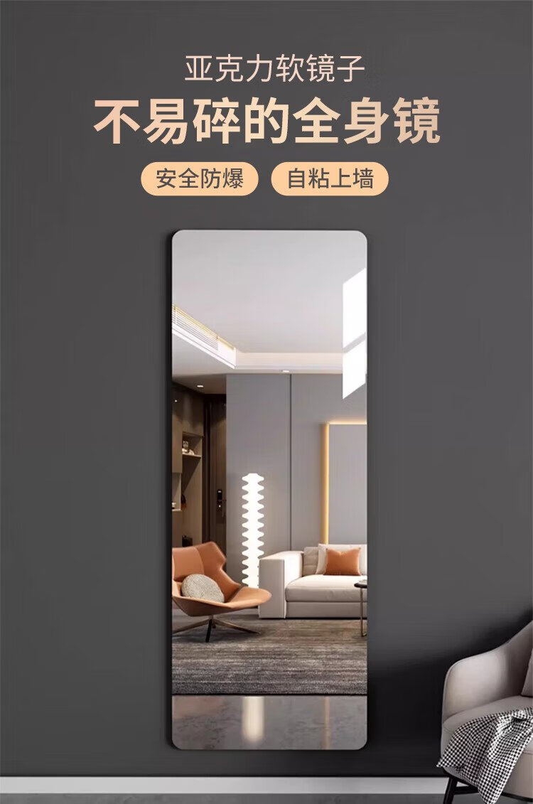 卓博穿衣镜亚克力镜子贴墙粘贴化妆镜梳妆镜高清软镜片40*40cm