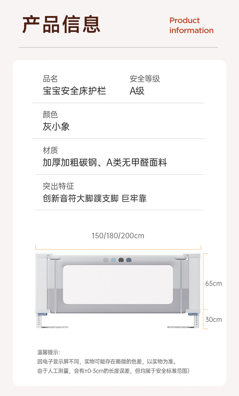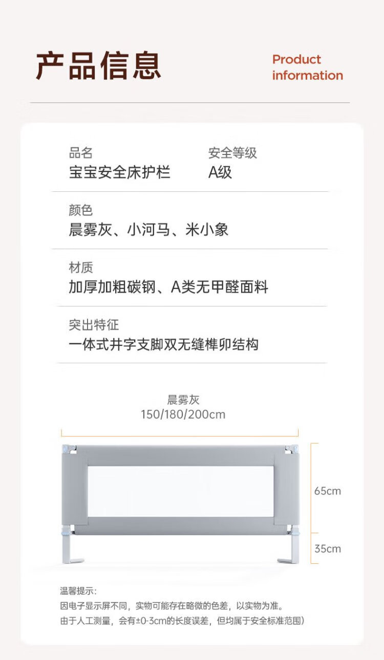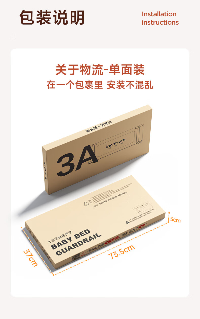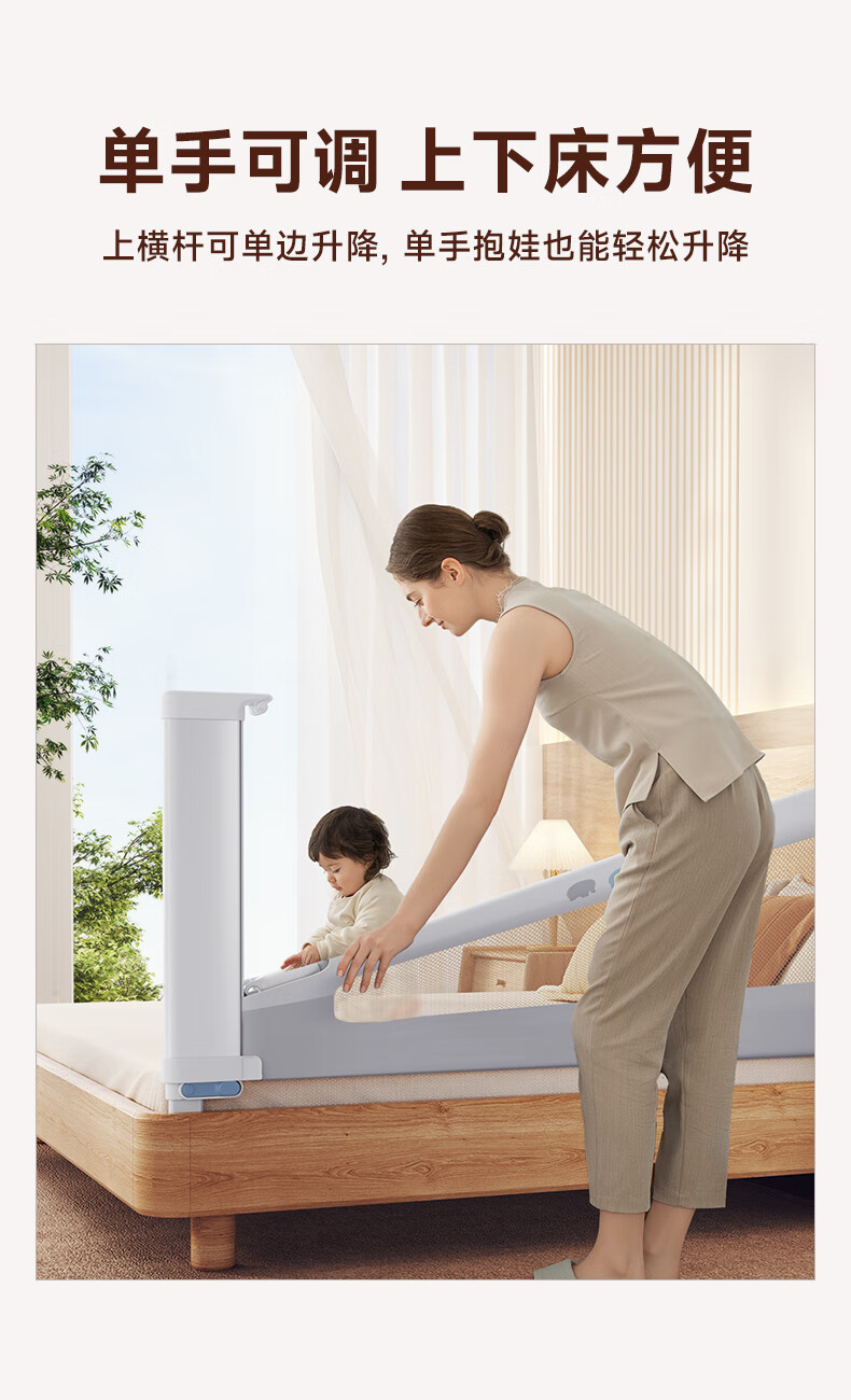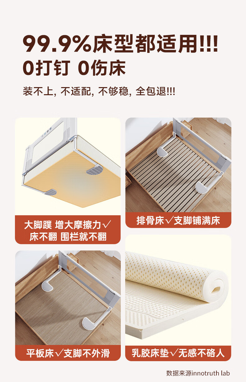 InnoTruth婴诺婴儿床围栏床上单边宝宝防摔围挡安全床边护栏一面挡板免打孔