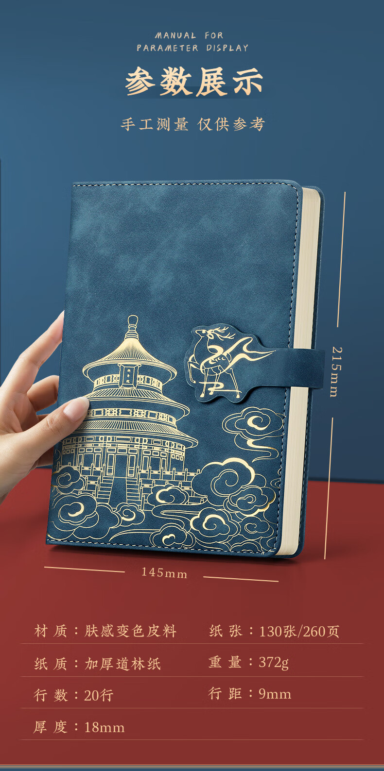 ujia 国潮笔记本本子故宫国风文创记事本商务伴手礼品高颜值文具日记本企业可定制 中国红A5/260页