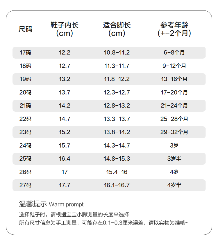 Length (cm) 22.8 23.1 23.5 24.1 24.5 25.1 25.7 26 26.7 27.3 27.9 28.6 29.2