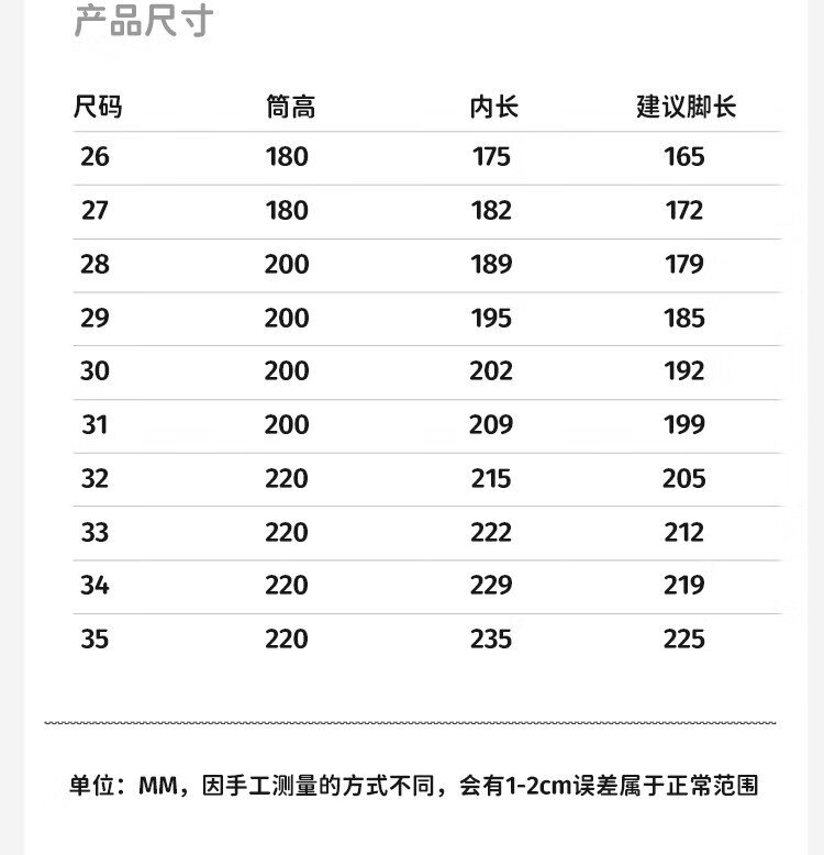 Outseam (cm) 99 cm 101.5 cm 104 cm 106.5 cm 109 cm