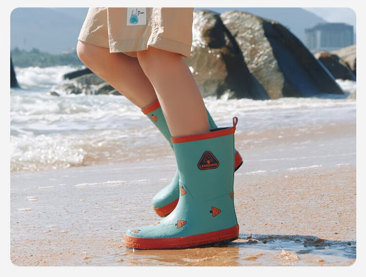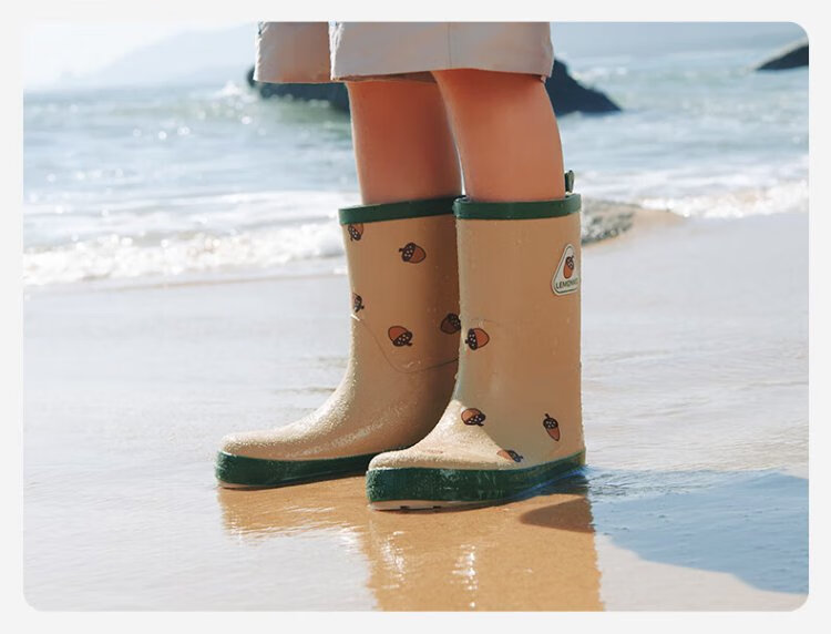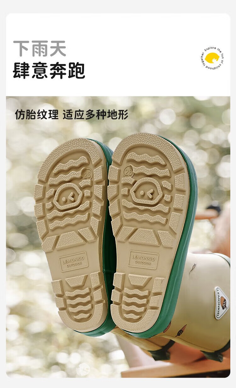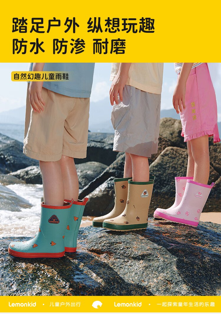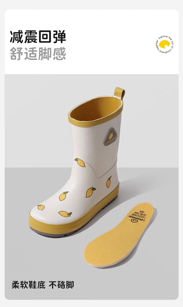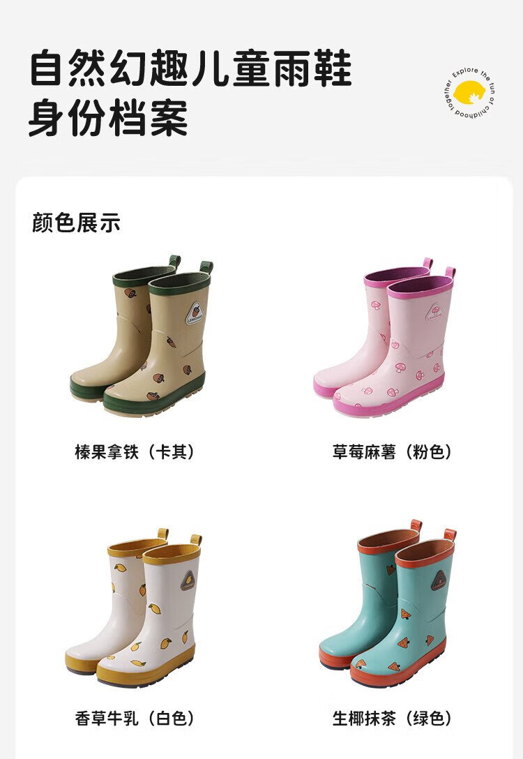 柠檬宝宝儿童雨鞋男女童胶鞋防滑防水鞋大童小学生雨靴 生椰抹茶 32码
