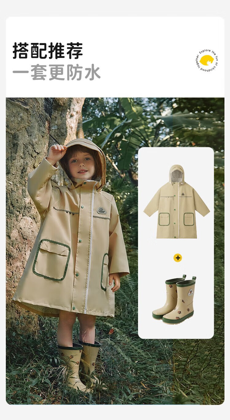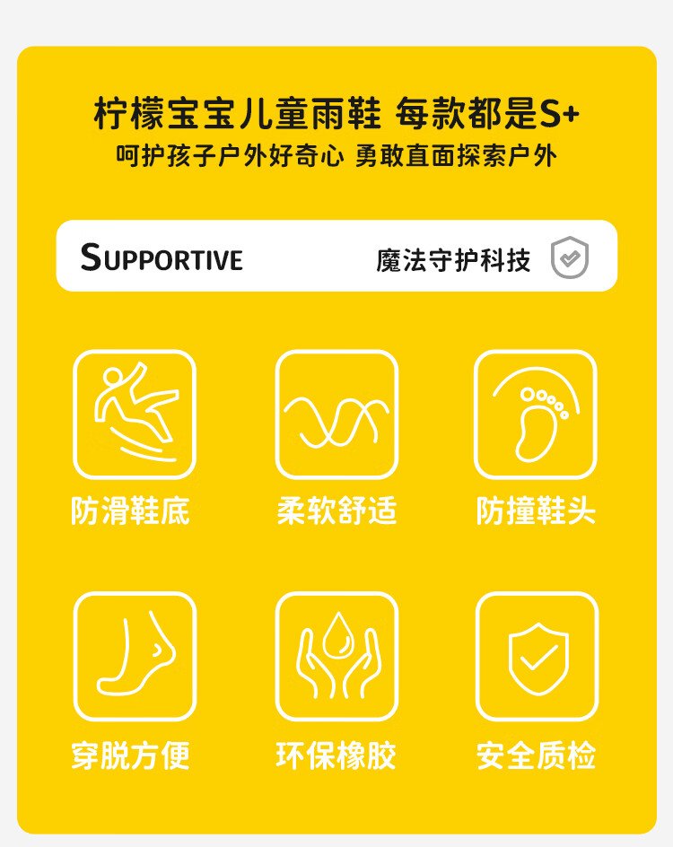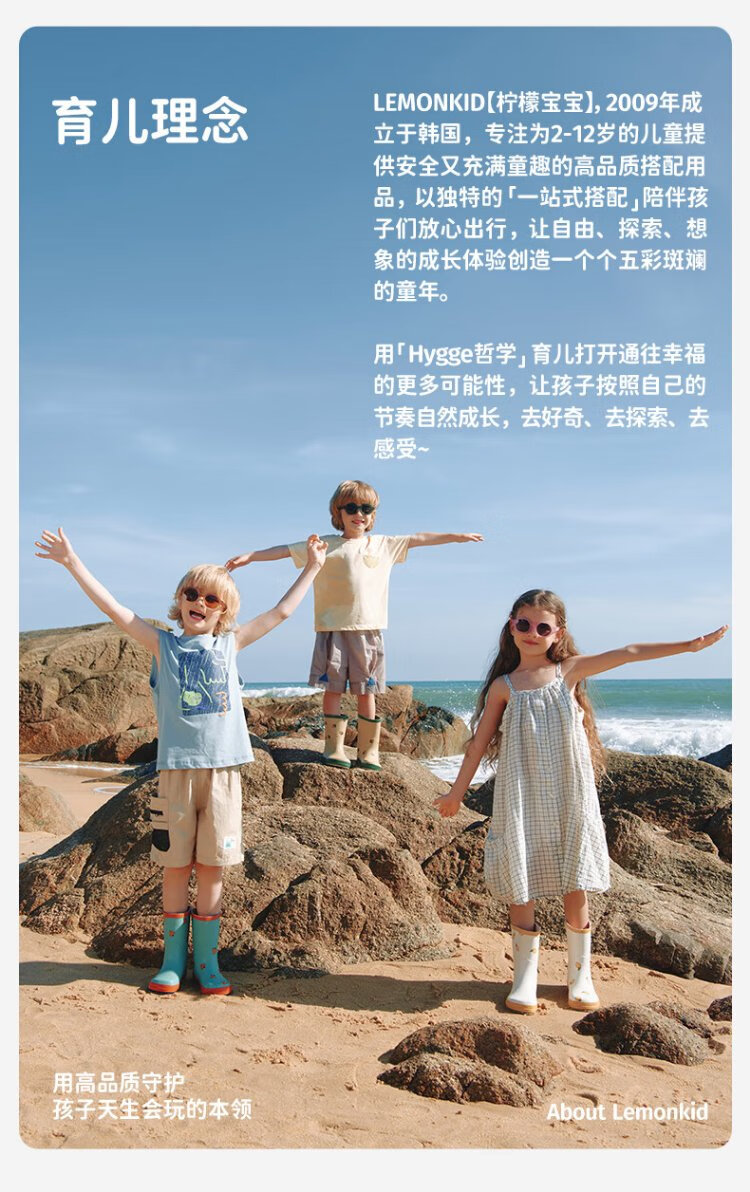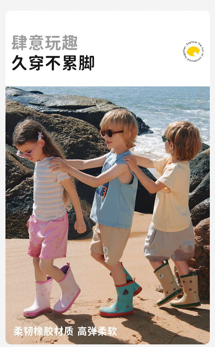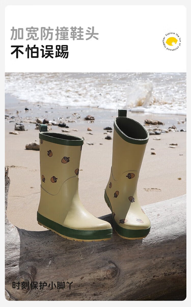 柠檬宝宝儿童雨鞋男女童胶鞋防滑防水鞋大童小学生雨靴 生椰抹茶 32码