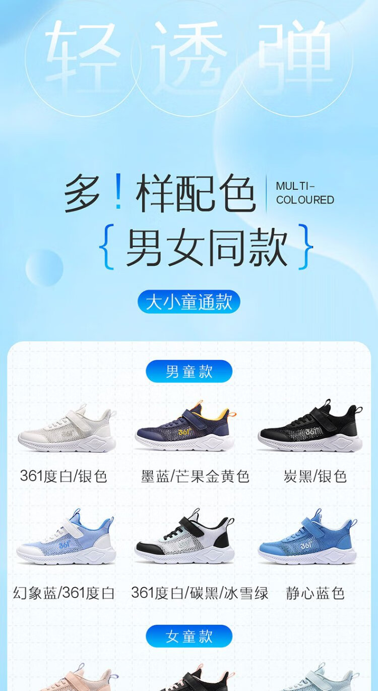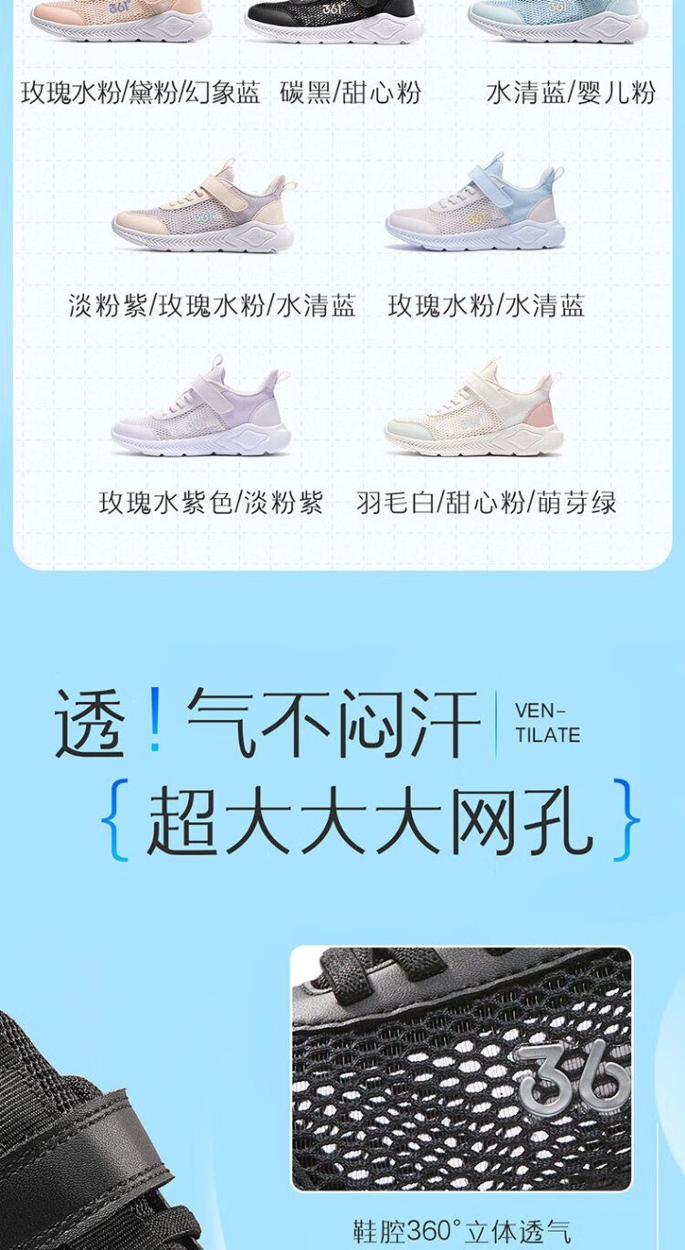 361°童鞋 儿童跑鞋2025夏男女童透气轻便校园鞋轻弹跑鞋 粉34