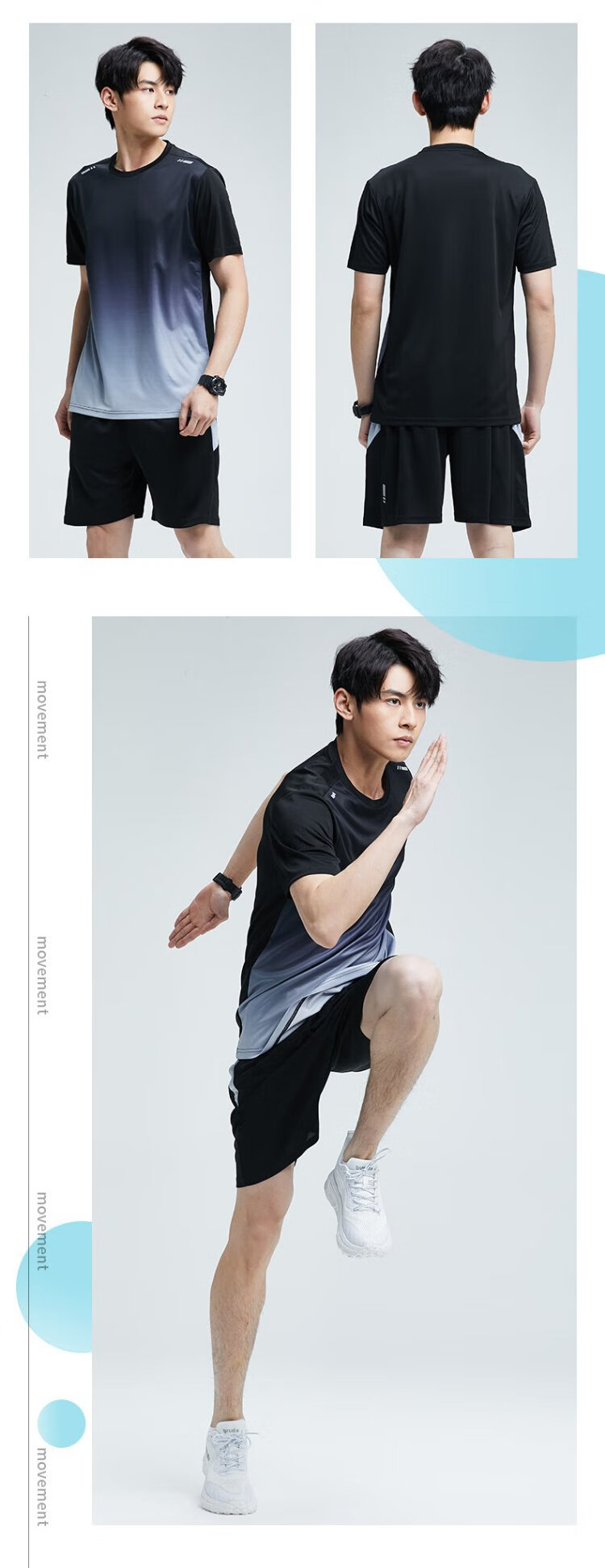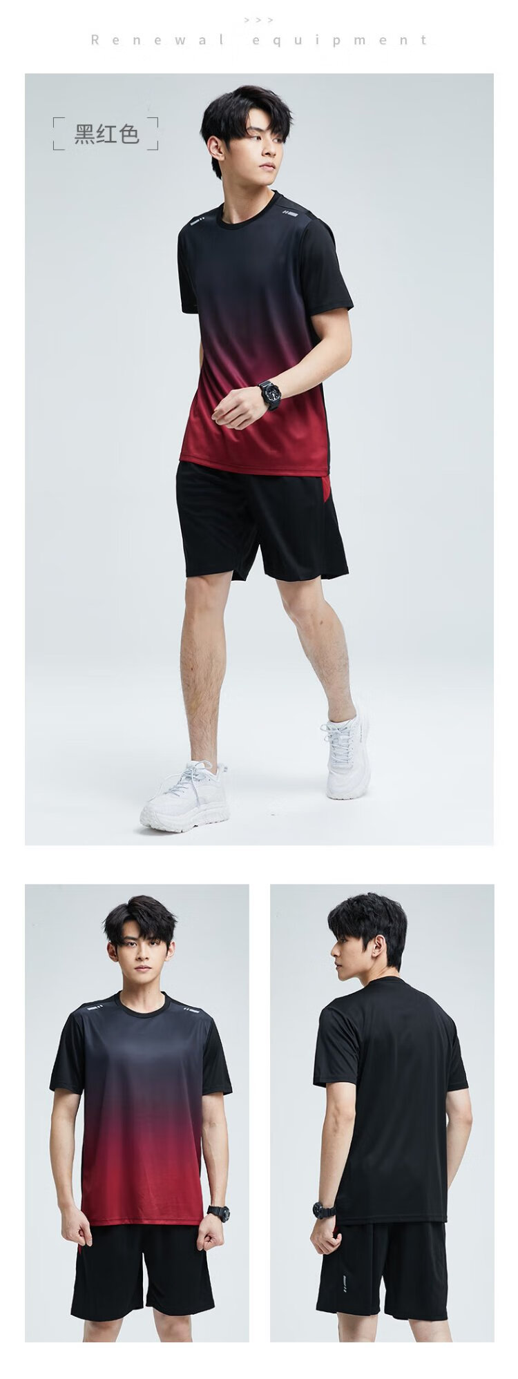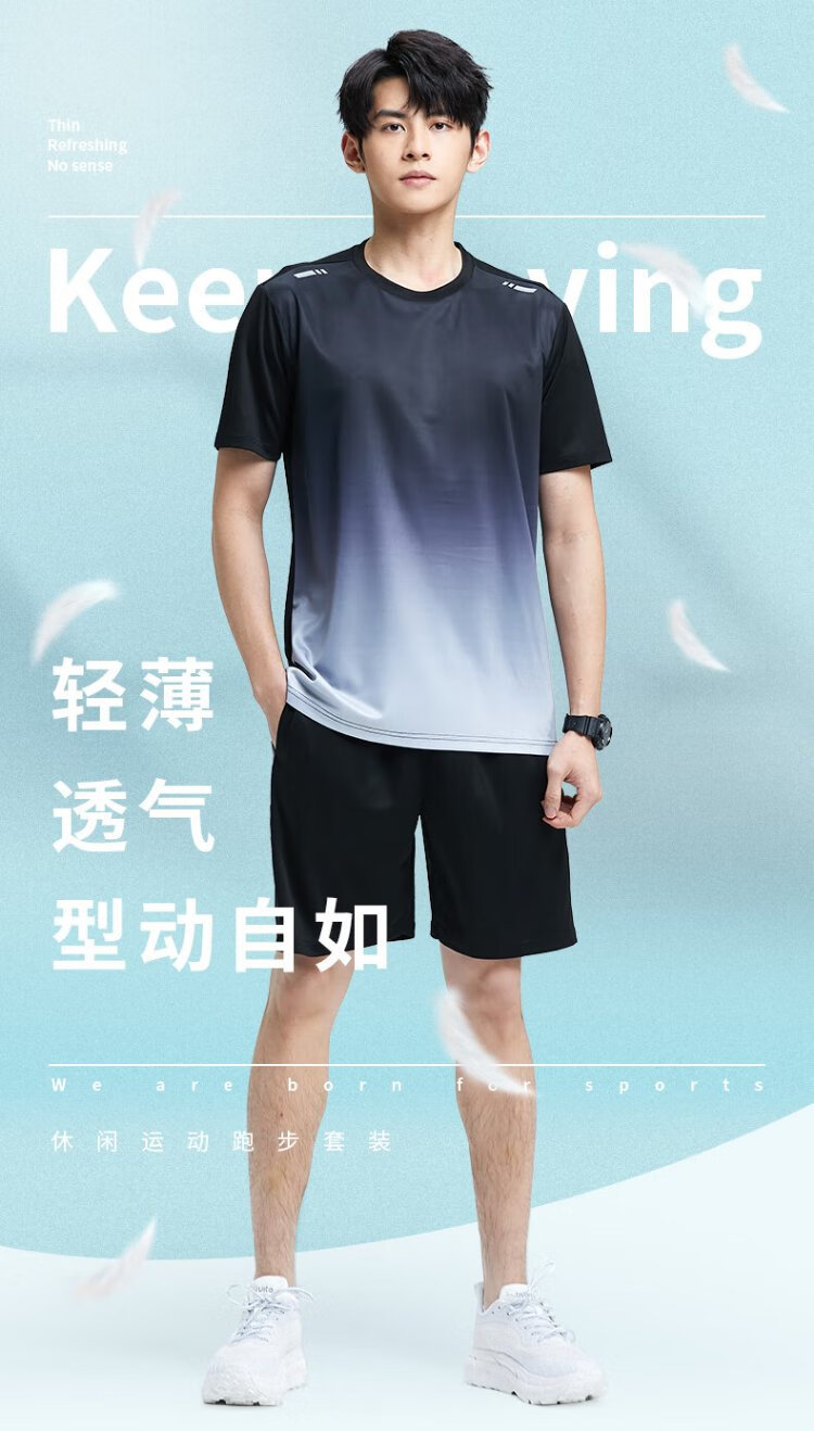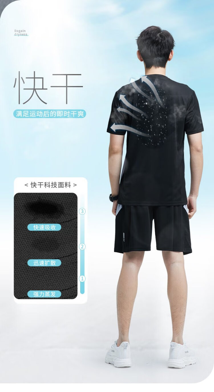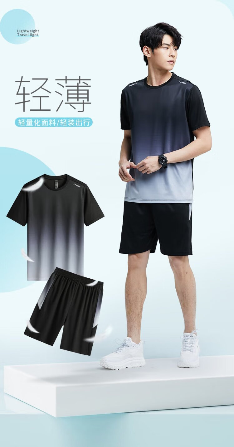 步锐特(BURUITE)运动套装男夏季健身衣服速干短袖T恤篮球羽毛球训练短裤跑步装备