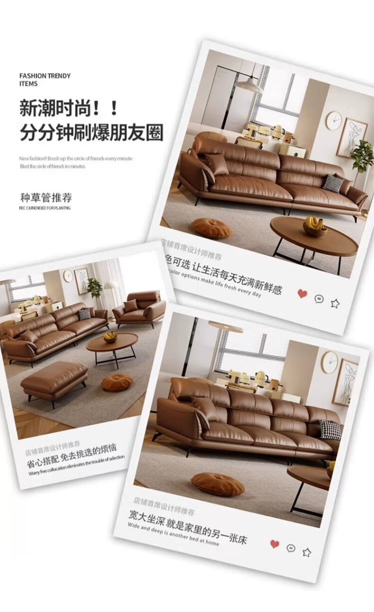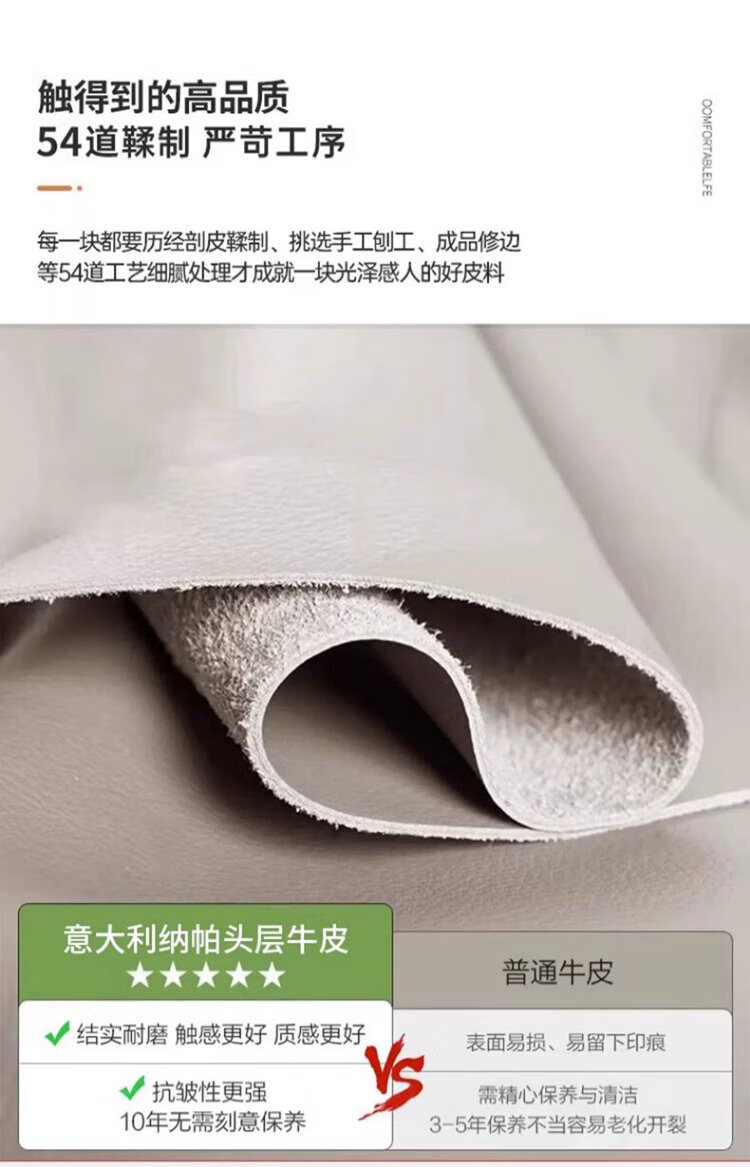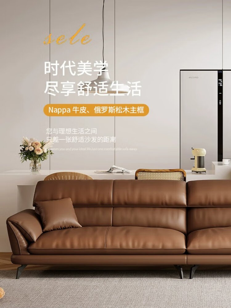 品族意式真皮沙发纳帕真皮沙发客厅小户型直排沙发PZ-688 2.8双+贵a