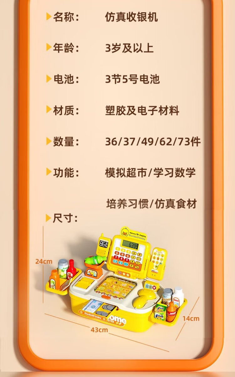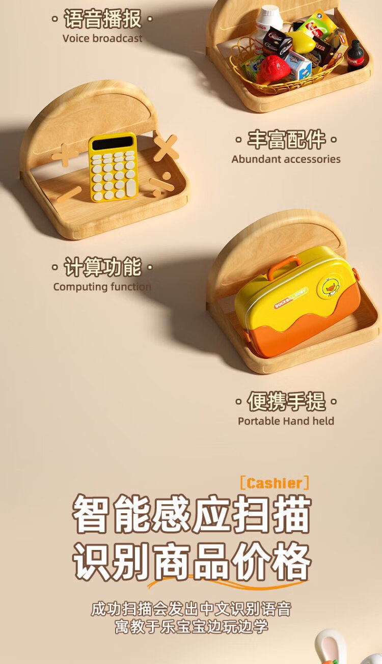 鑫思特(XST)儿童超市收银机玩具黄小鸭仿真语音购物收银台女孩过家家生日礼物