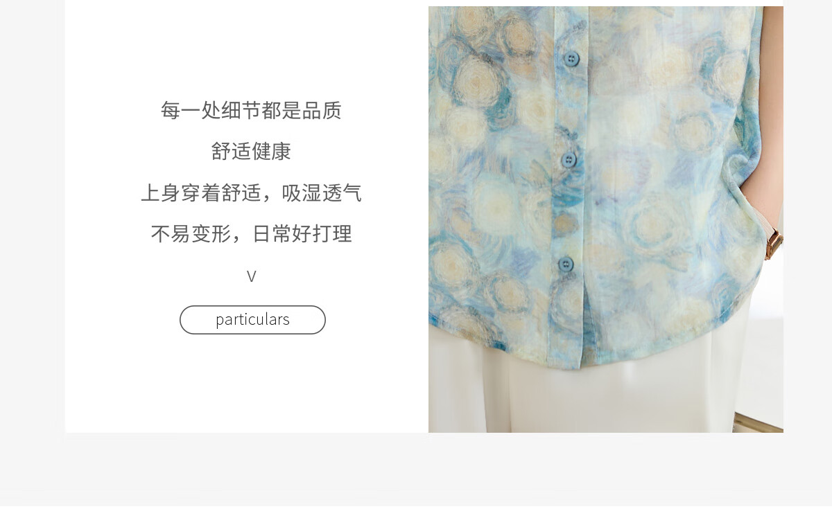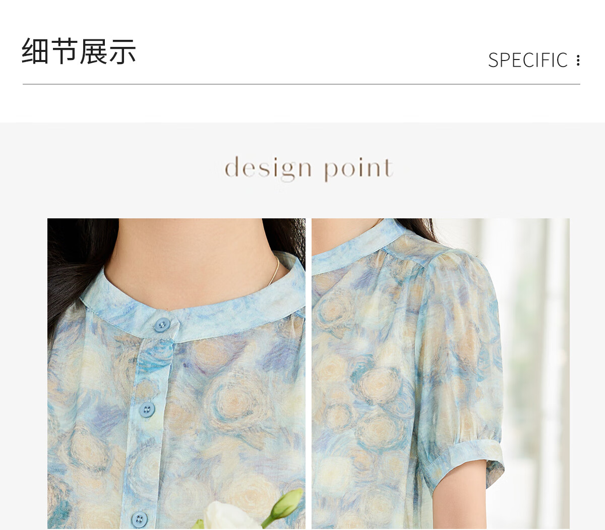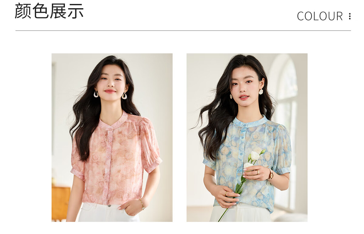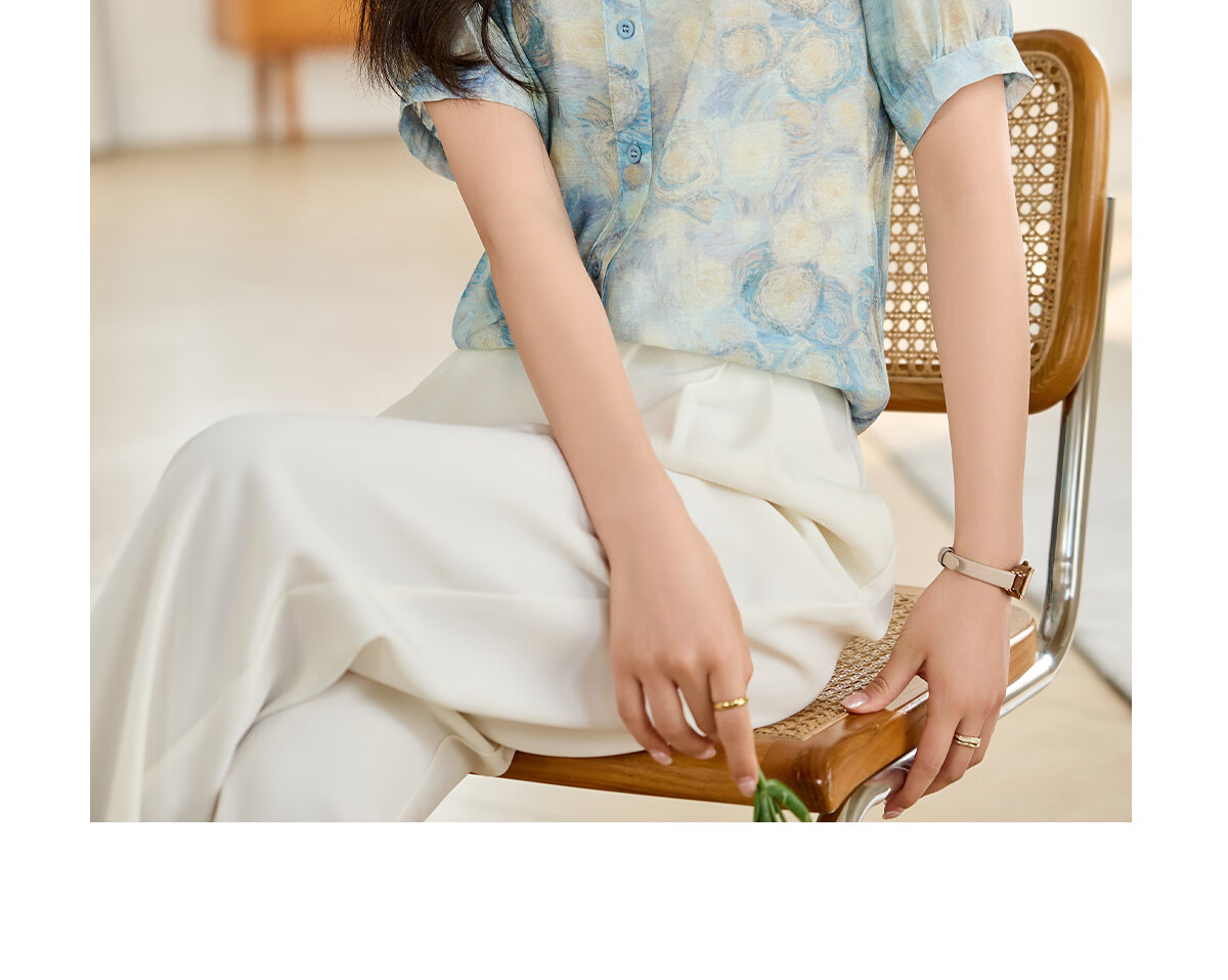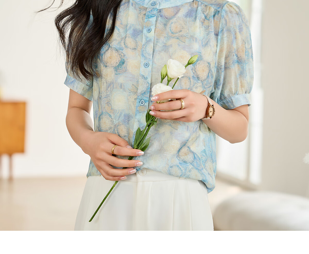 她享短袖衬衫女圆领星空设计感宽松休闲泡泡袖上衣衬衣T143C1343