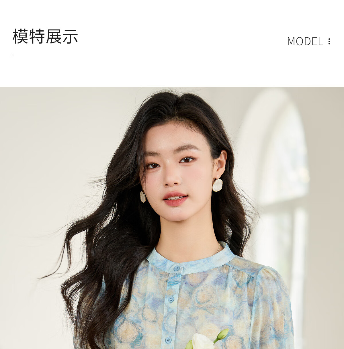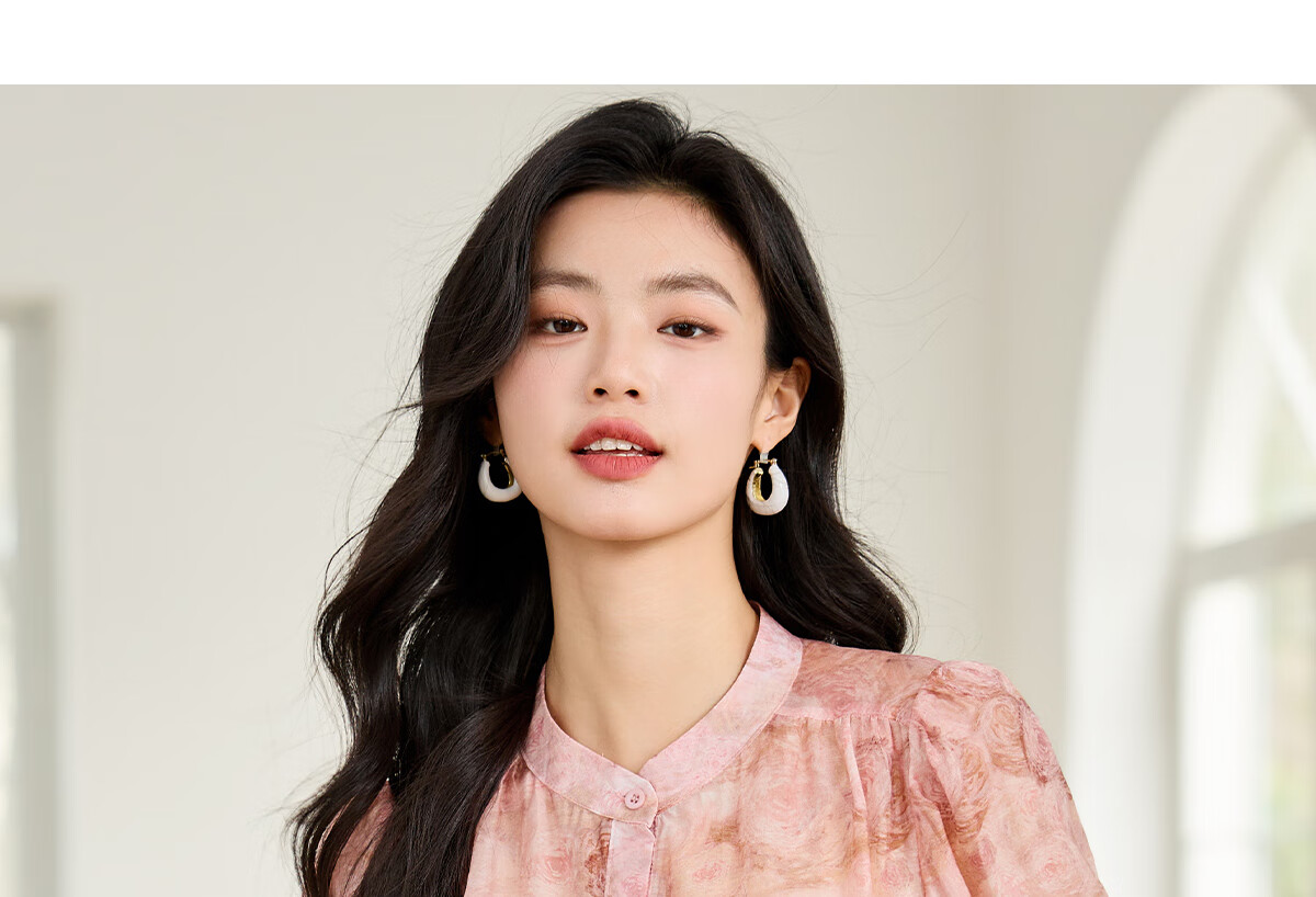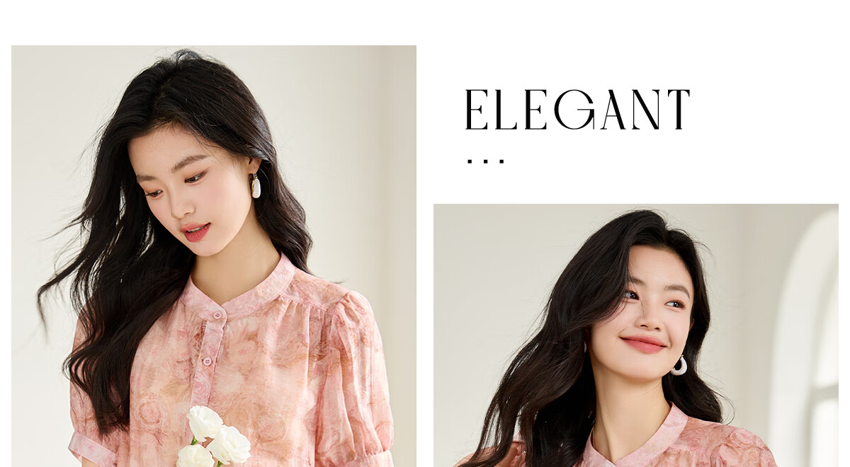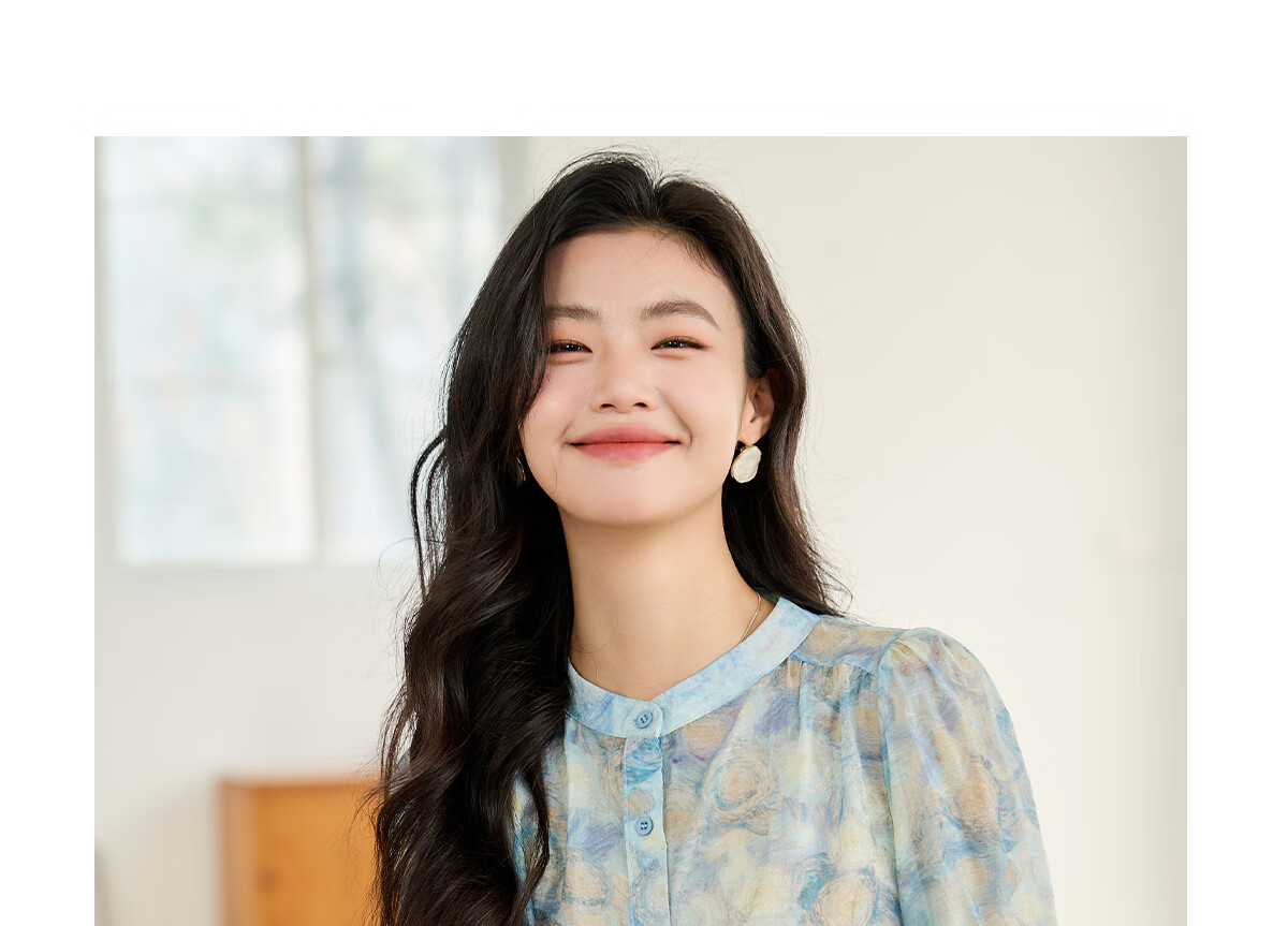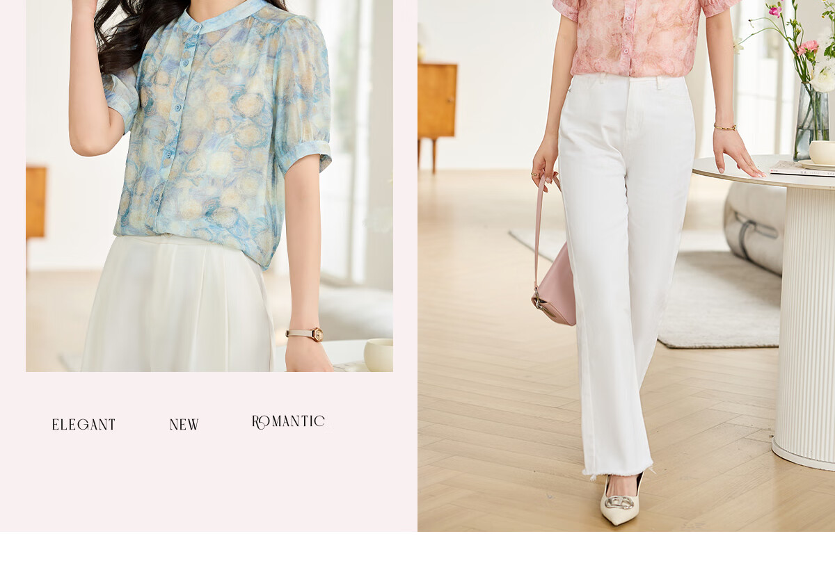 她享短袖衬衫女圆领星空设计感宽松休闲泡泡袖上衣衬衣T143C1343