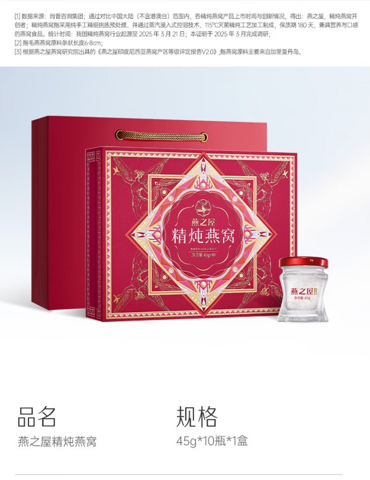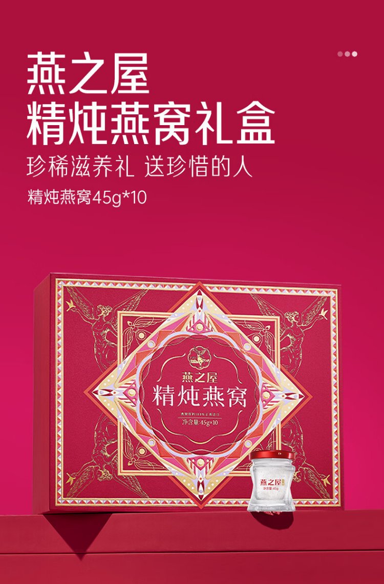燕之屋精炖燕窝新年礼物过年年货礼盒送长辈送礼礼品45g×10瓶无糖