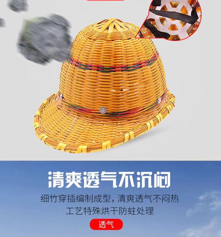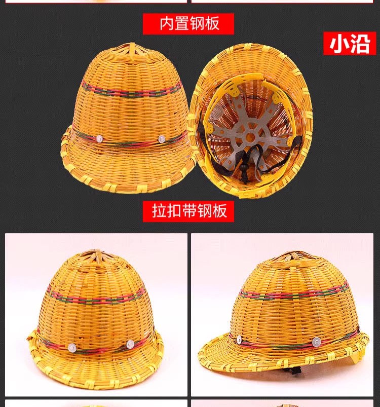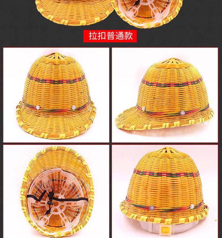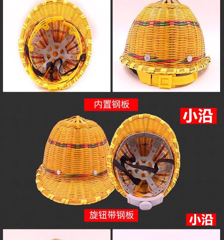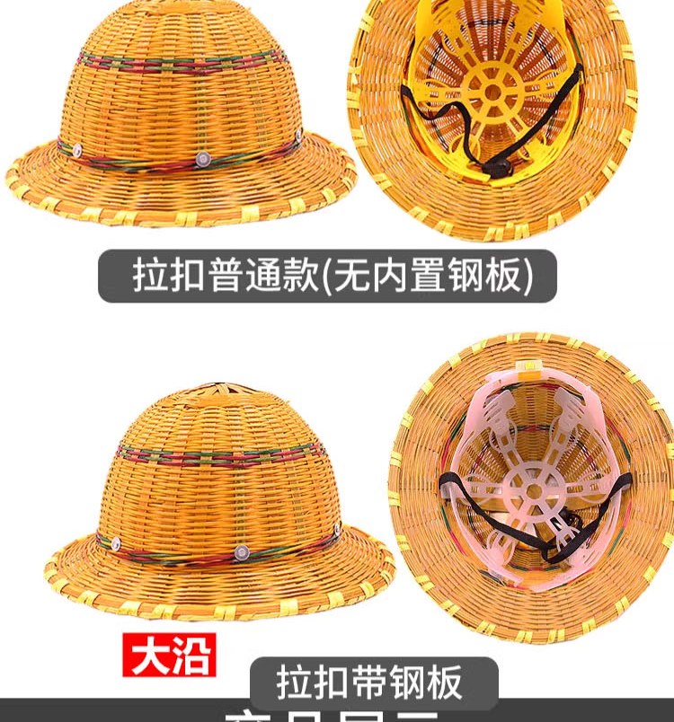 集华世竹编遮阳透气施工安全帽【小沿拉扣/加钢板】JHS-1278
