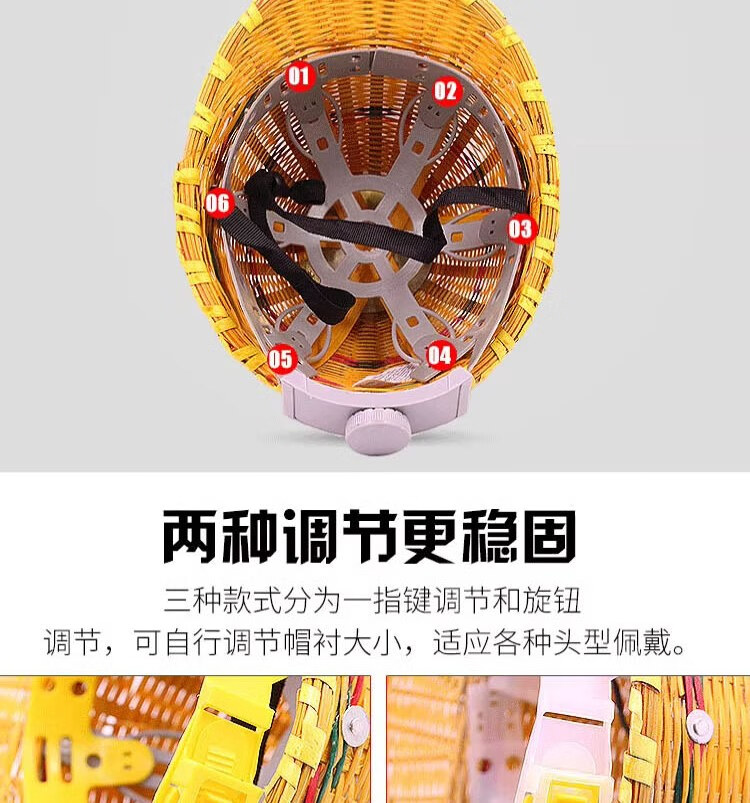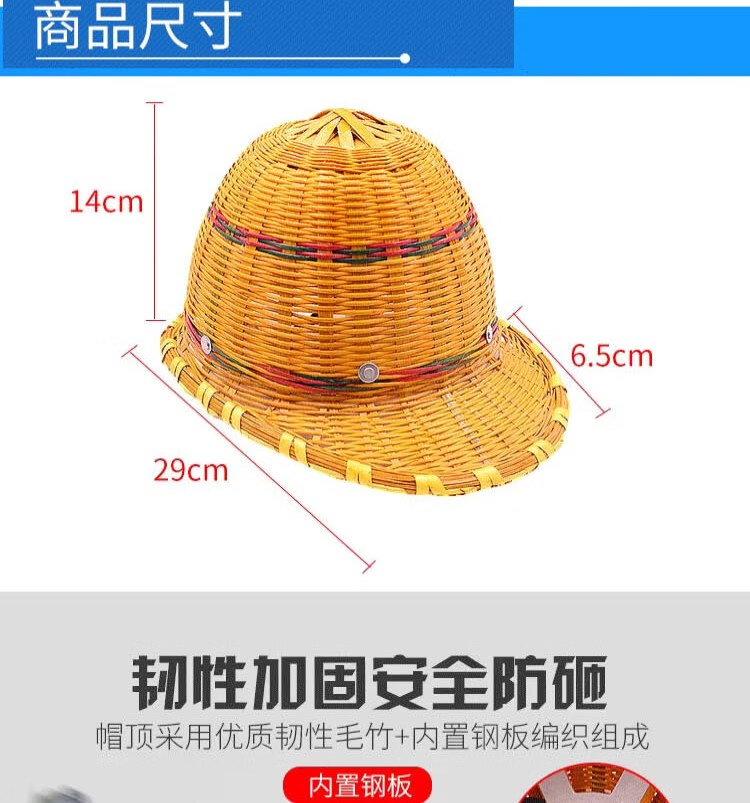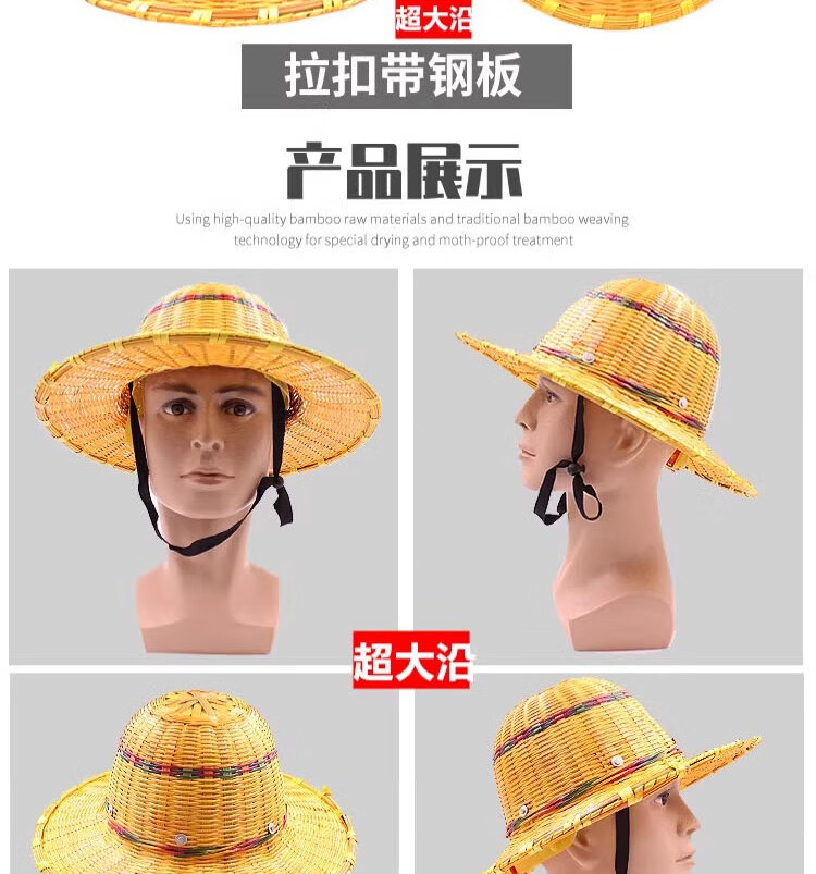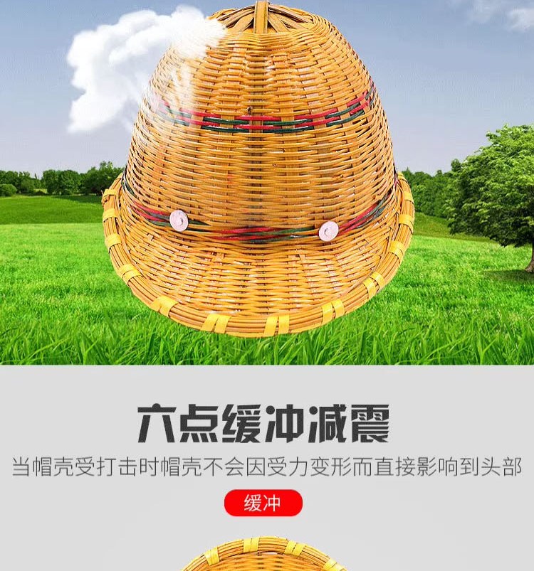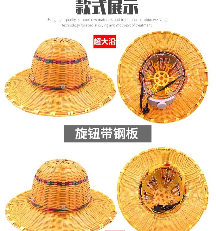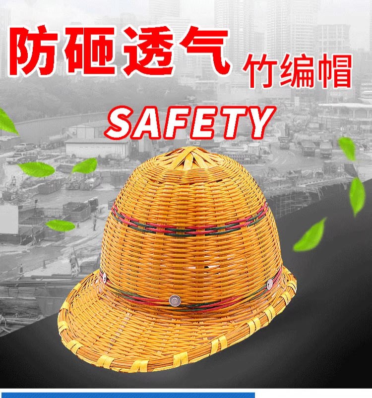 集华世竹编遮阳透气施工安全帽【小沿拉扣/加钢板】JHS-1278