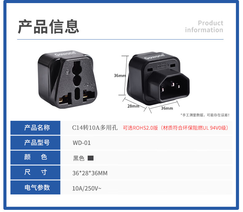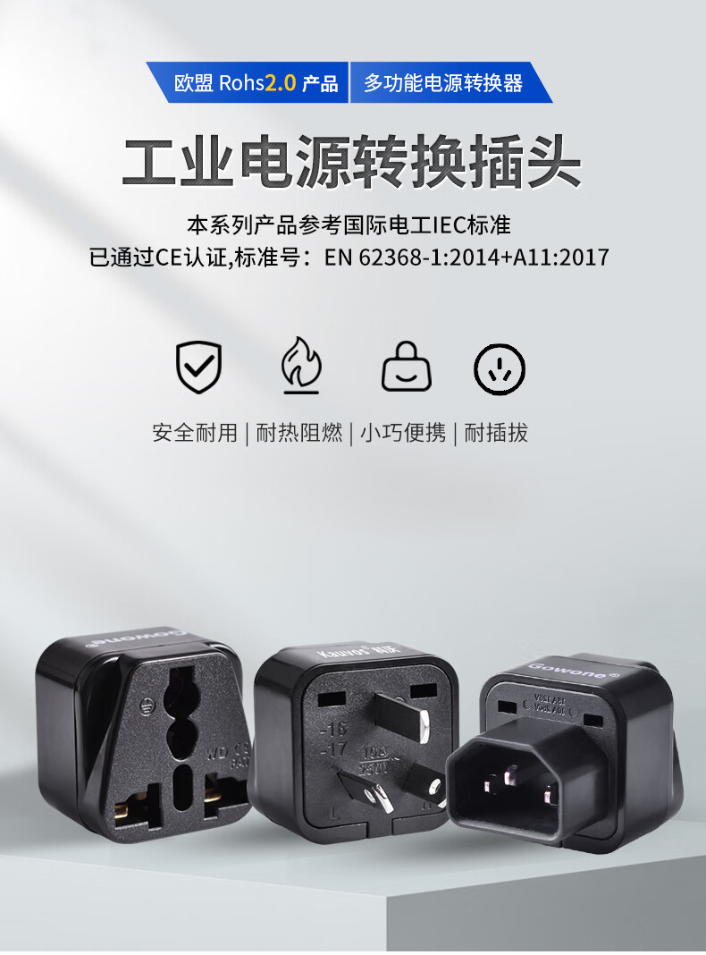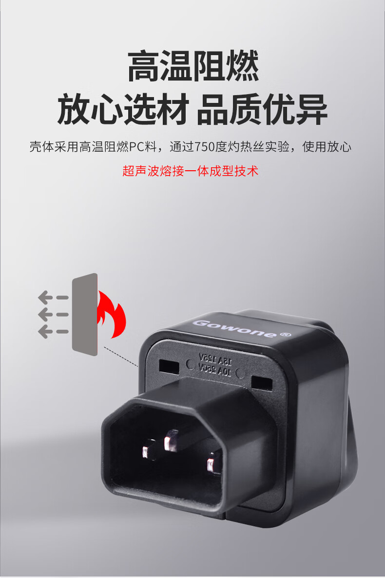 Gowone机房服务器PDU转换接头c13品字尾转10A多用孔全球通用转换插座C14转10A多用孔