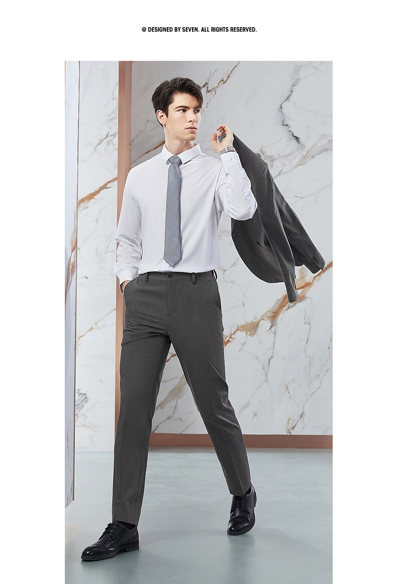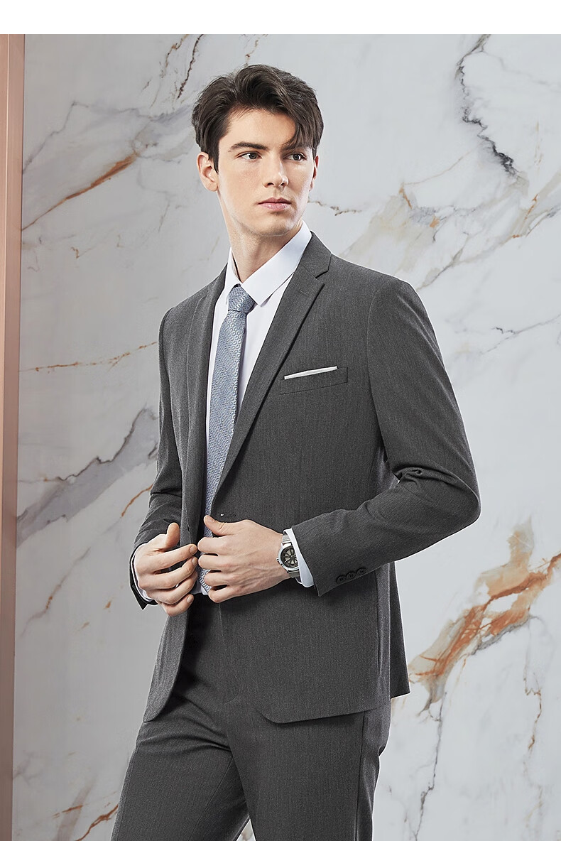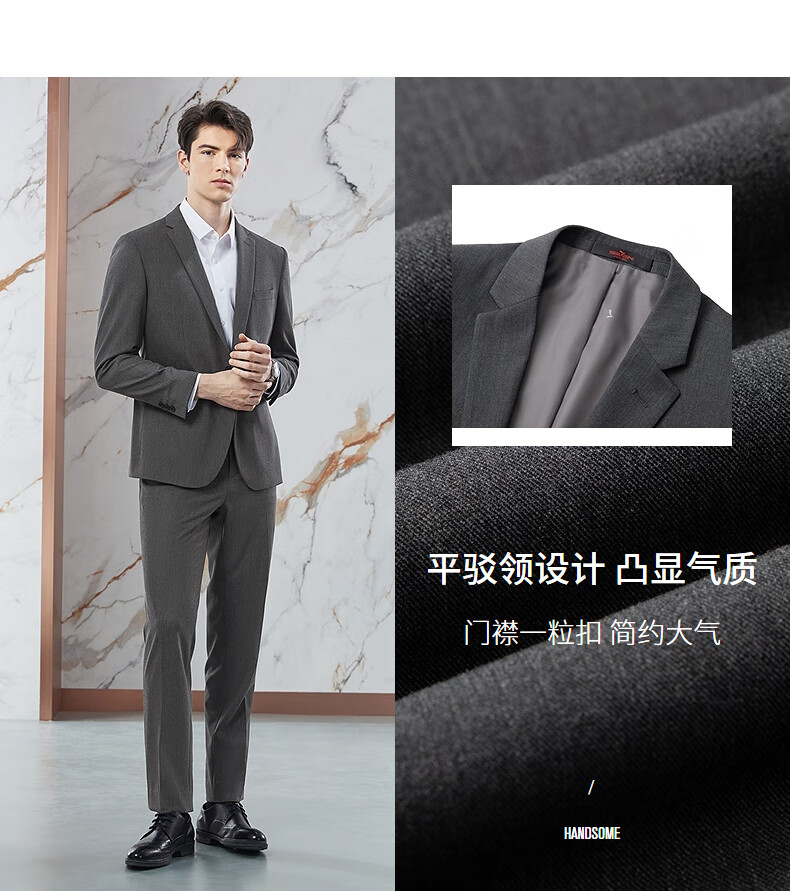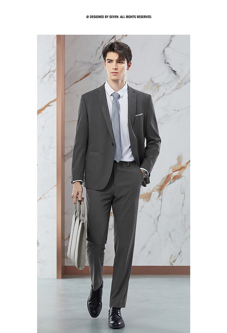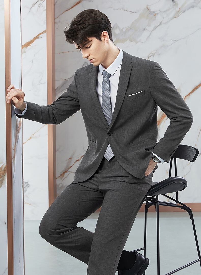 柒牌【含桑蚕丝】西服套装男士春季商务正装面试新郎结婚礼服