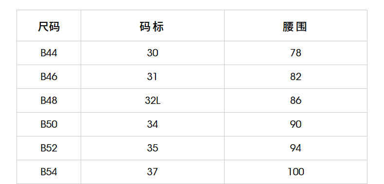 USA(inch) 28-30 30-32 32-34 34-38 38-42