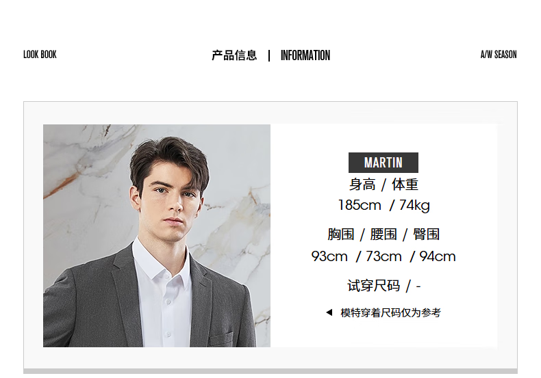 China (cm) 165 / 88-90 170 / 96-98 175 / 108-110 180 / 118-122 185 / 126-130