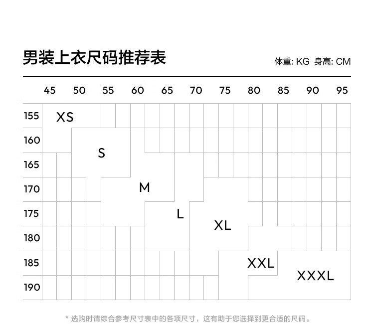 China (cm) 160-165/84-86 165-170 / 88-90 167-172 / 92-96 168-173 / 98-102 170-176 / 106-110