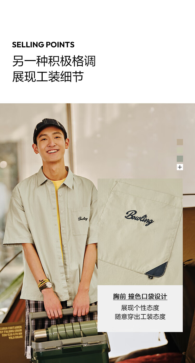 森马短袖衬衫男夏字母刺绣上衣宽松工装风109324104110